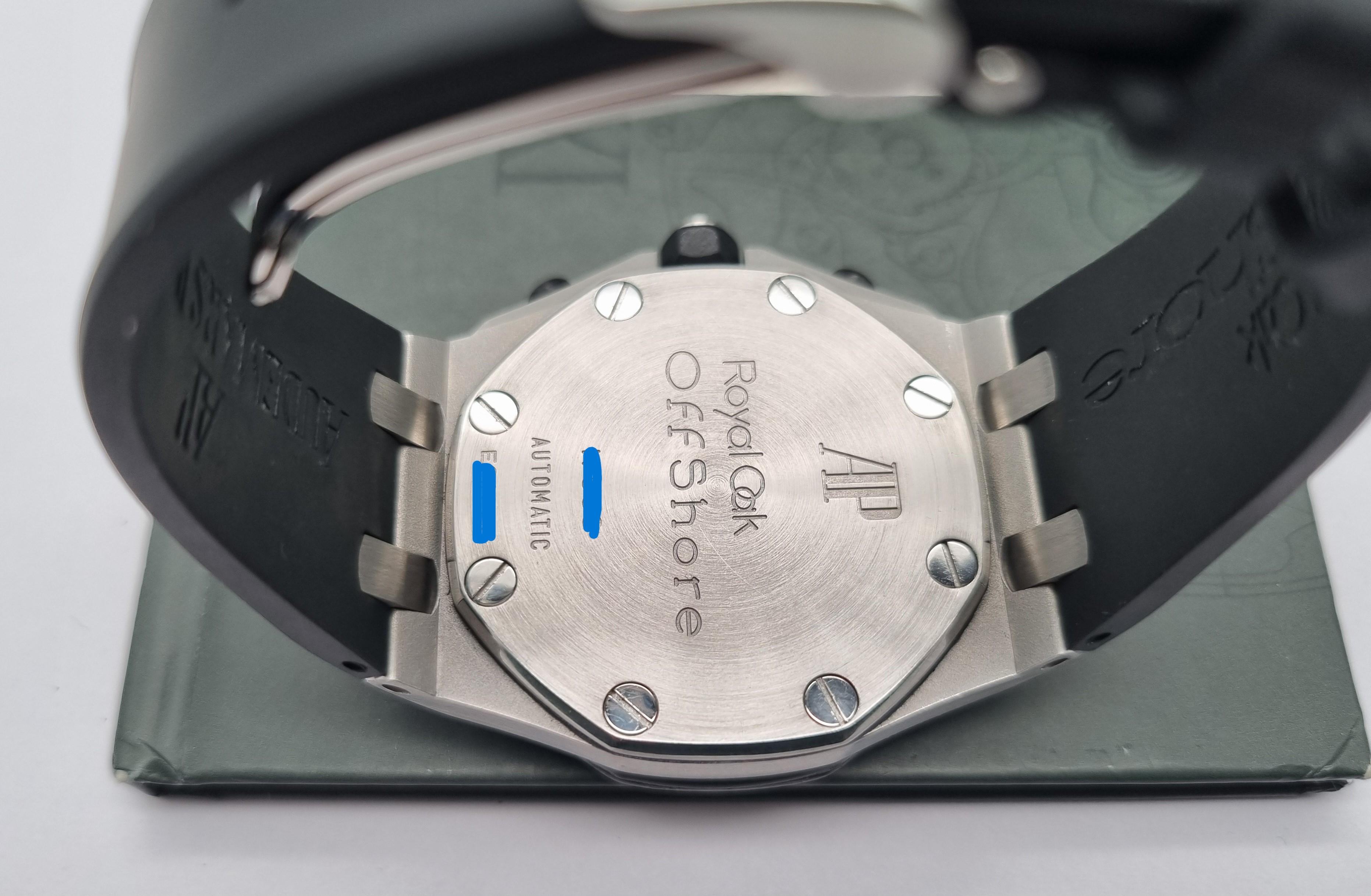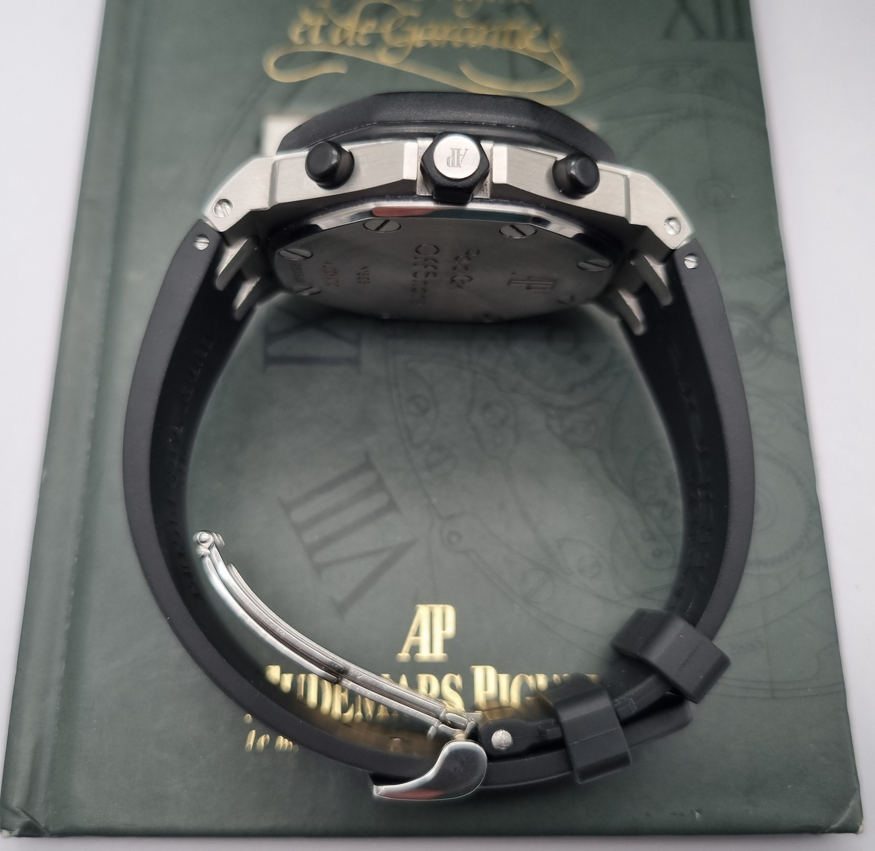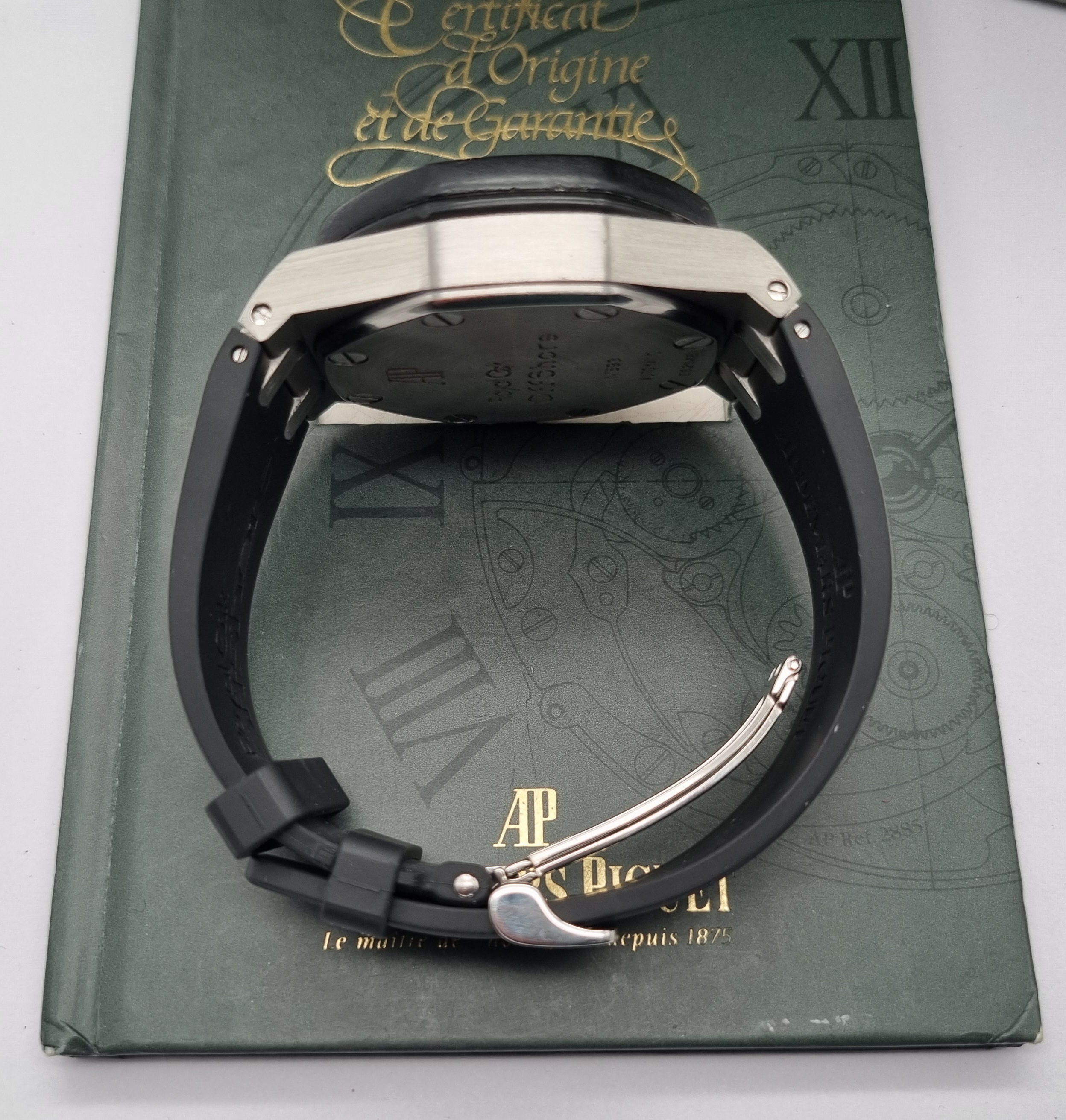 Audemars Piguet Royal oaf Offshore Chronograph 25940SK.OO.D002CA.02.A Mm 42 Steel Silver Dial Full Set 2003 Serviced. Manufacture: Audemars Piguet Model : Royal Oak Reference Number: 25940SK.OO.D002CA.02 Case Material: Solid Stainless Steel Case Size: 42MM Bracelet Material: Factory Black Rubber Strap New Bracelet Size: 8 IN Adjustable Crystal Material: Sapphire Crystal Movement: Automatic Dial: Factory Silver Dial Just been serviced and sub tested. Full set as pics year 2003. Condition: Our pictures are of the actual item and are the best description of condition we can show of an item. All items we sell are used, please refer to photos for condition. 100% authentic.