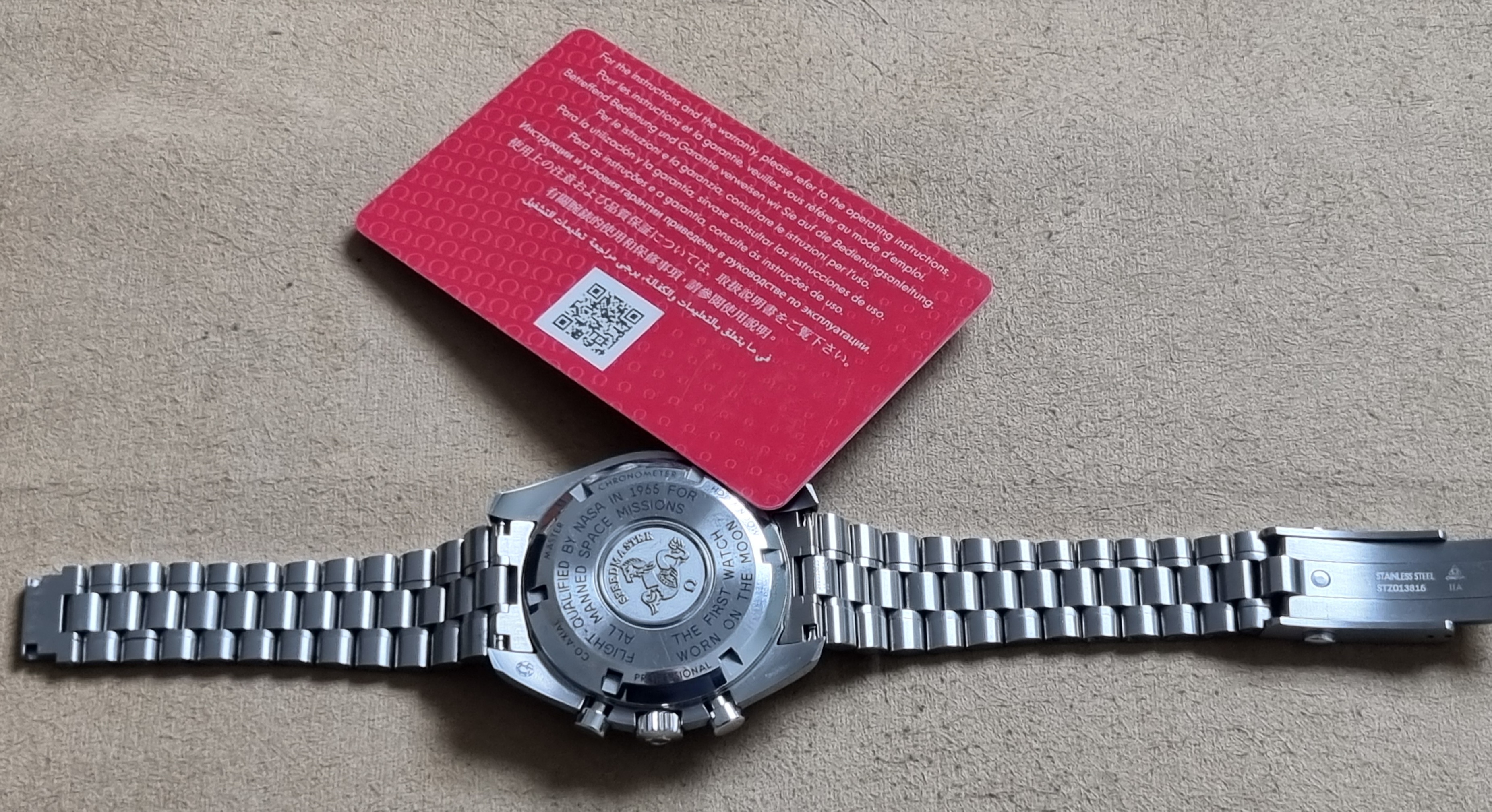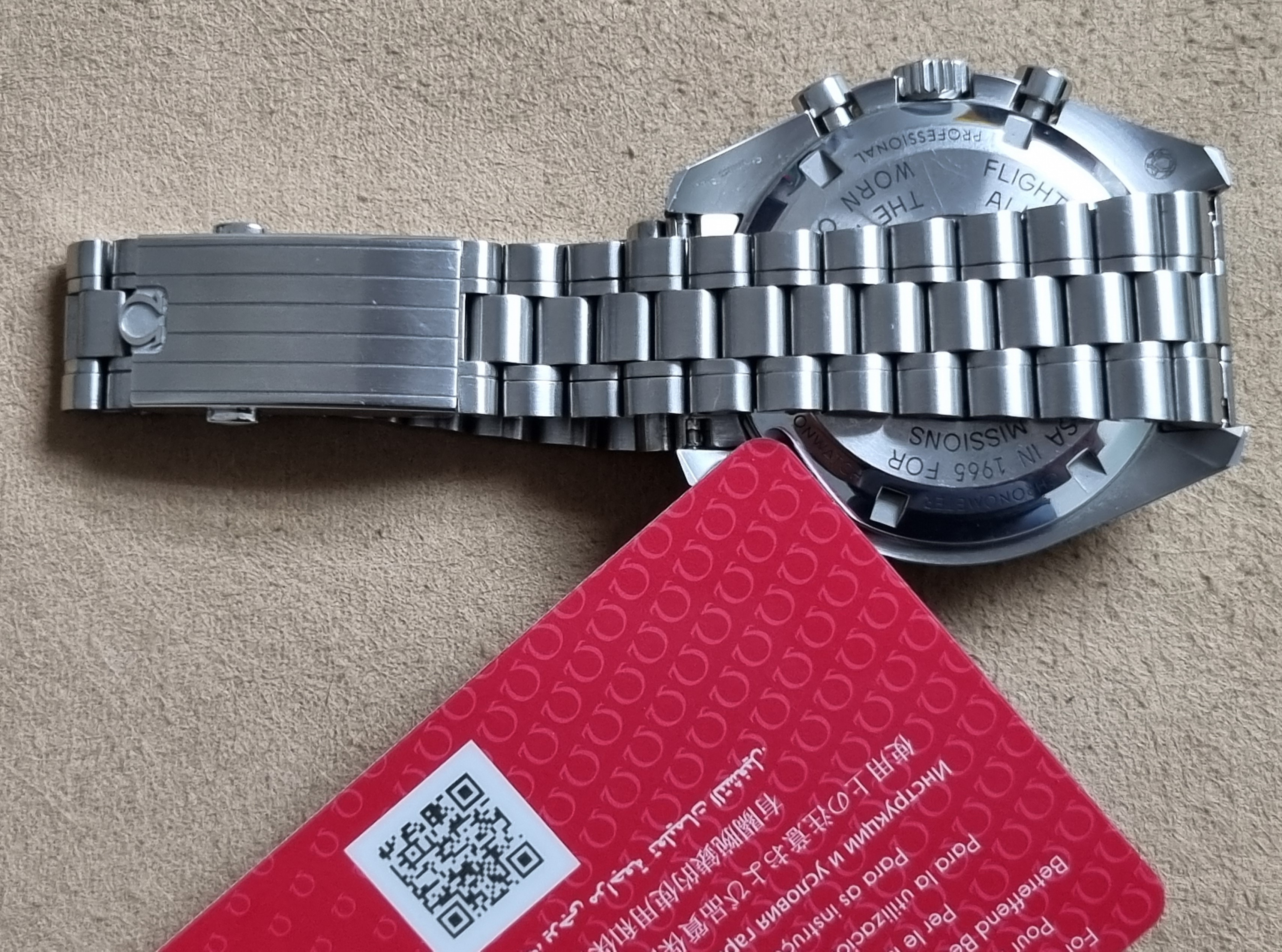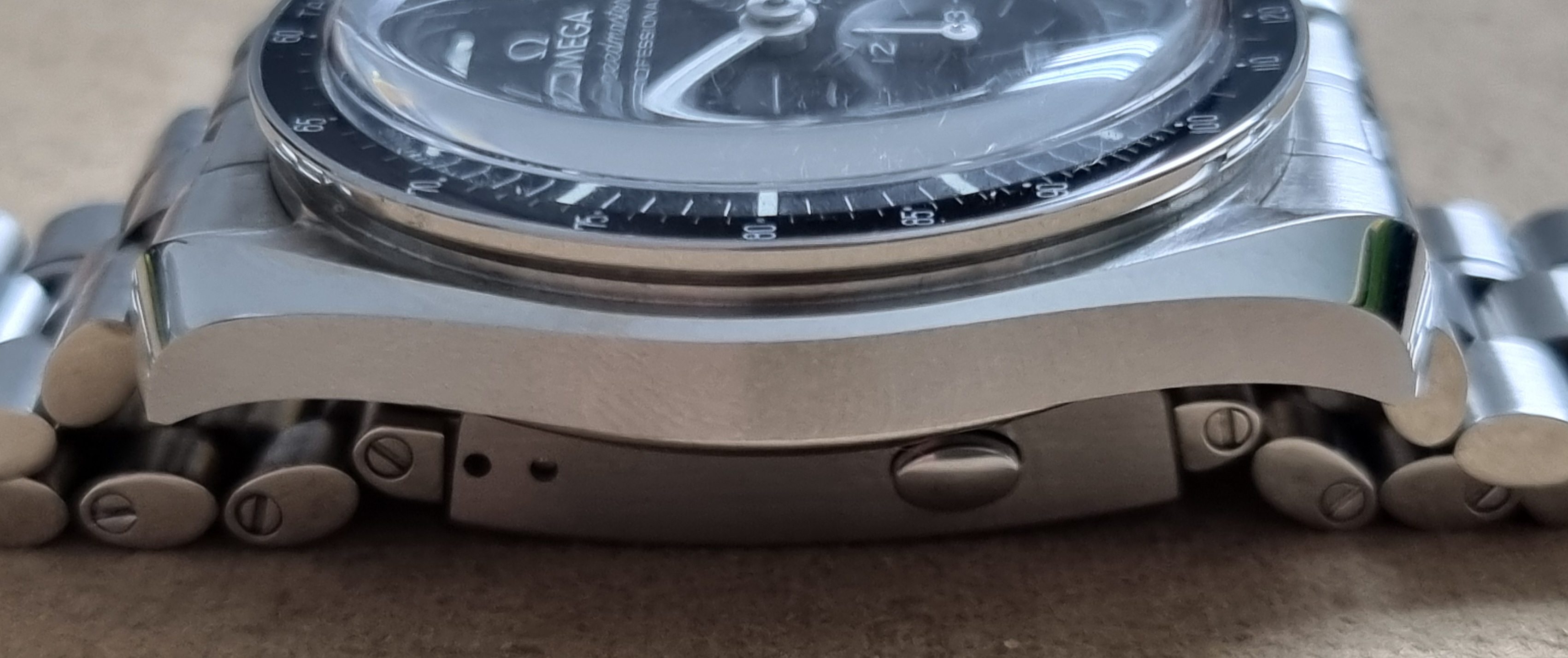 Omega Speedmaster Professional Moonwatch 31030425001001 Caliber 3861 Like New Full Set 05-2021. Like new condition as pics. The Speedmaster Moonwatch is one of the world’s most iconic timepieces. Having been a part of all six lunar missions, the legendary chronograph perfectly embodies the brand’s adventurous and pioneering spirit. Presented on a brushed bracelet with 5 curved links per row, this 42 mm stainless steel Moonwatch features a hesalite crystal on the dial and an embossed Seahorse medallion on the caseback. Inspired by the 4th generation Speedmaster worn on the moon, the model also features an asymmetrical case, a black “step” dial and the famous “Dot over 90” index on the anodized aluminium bezel ring. At the heart of this timepiece is the OMEGA Co-Axial Master Chronometer Calibre 3861, which powers the small seconds subdial, 30-minute recorder, 12-hour recorder and central chronograph hand. Reference 310.30.42.50.01.001 Open Case Measurement Modal lug to lug 20 mm Open Case Measurement Modal lug to lug 47.5 mm Open Case Measurement Modal thickness 13.2 mm Open Case Measurement Modal diameter 42 mm Case Steel Dial color Black Glass Hesalite crystal with central OMEGA logo Water resistance 5 bar (50 metres / 167 feet) Total product weight (approx.) 134 g Caliber Omega 3861 Movement type Manual winding Power reserve 50 hours