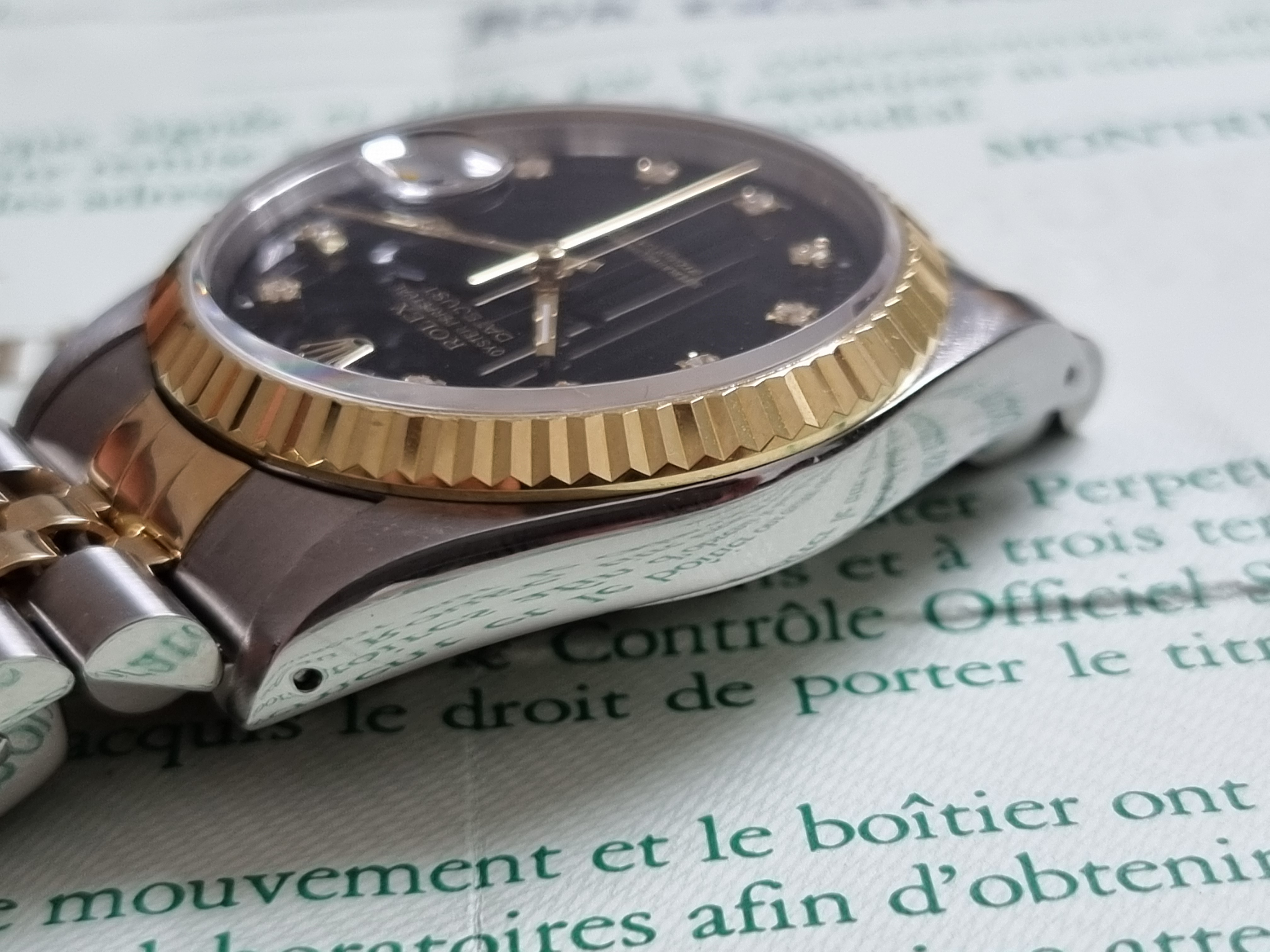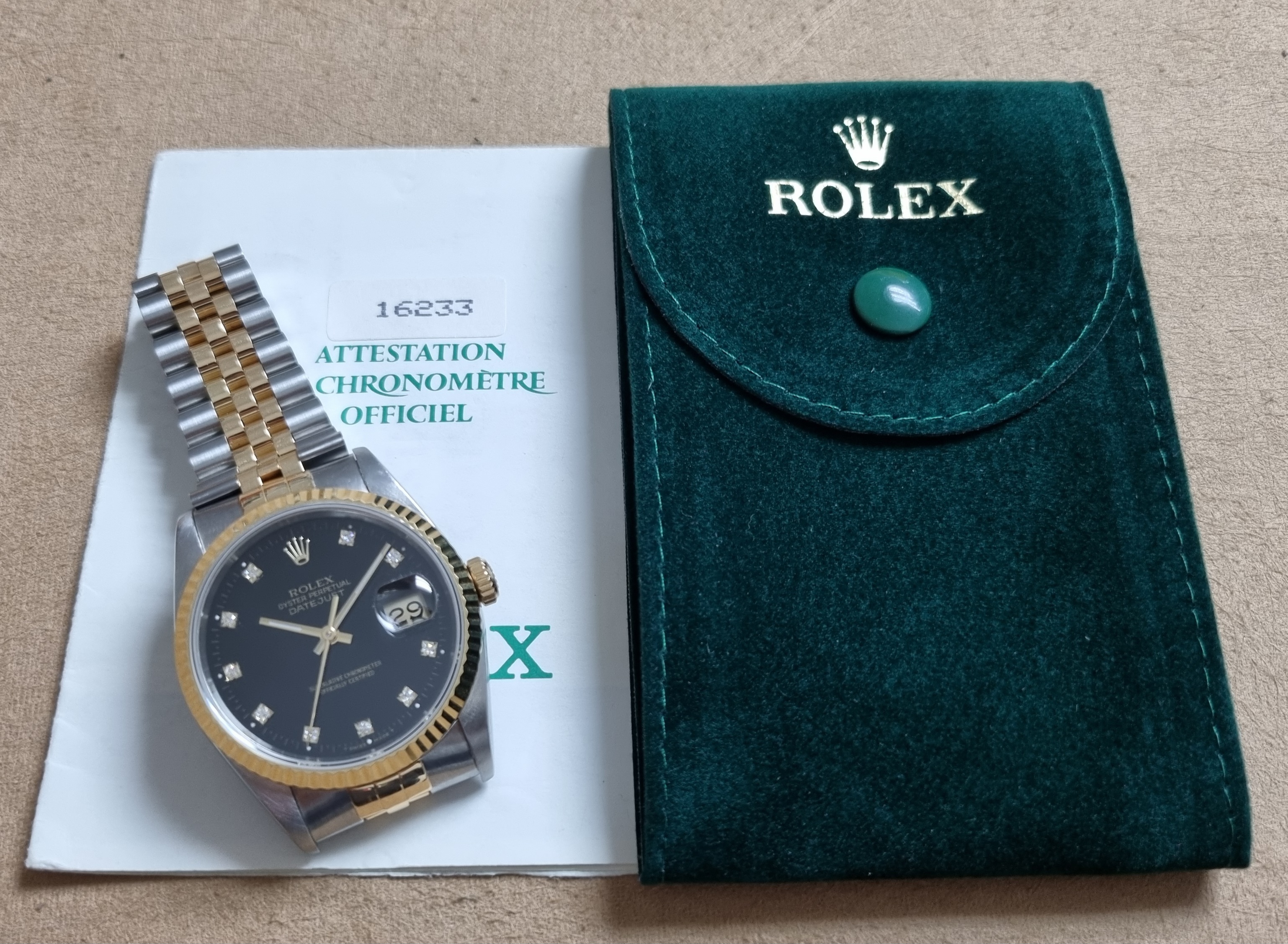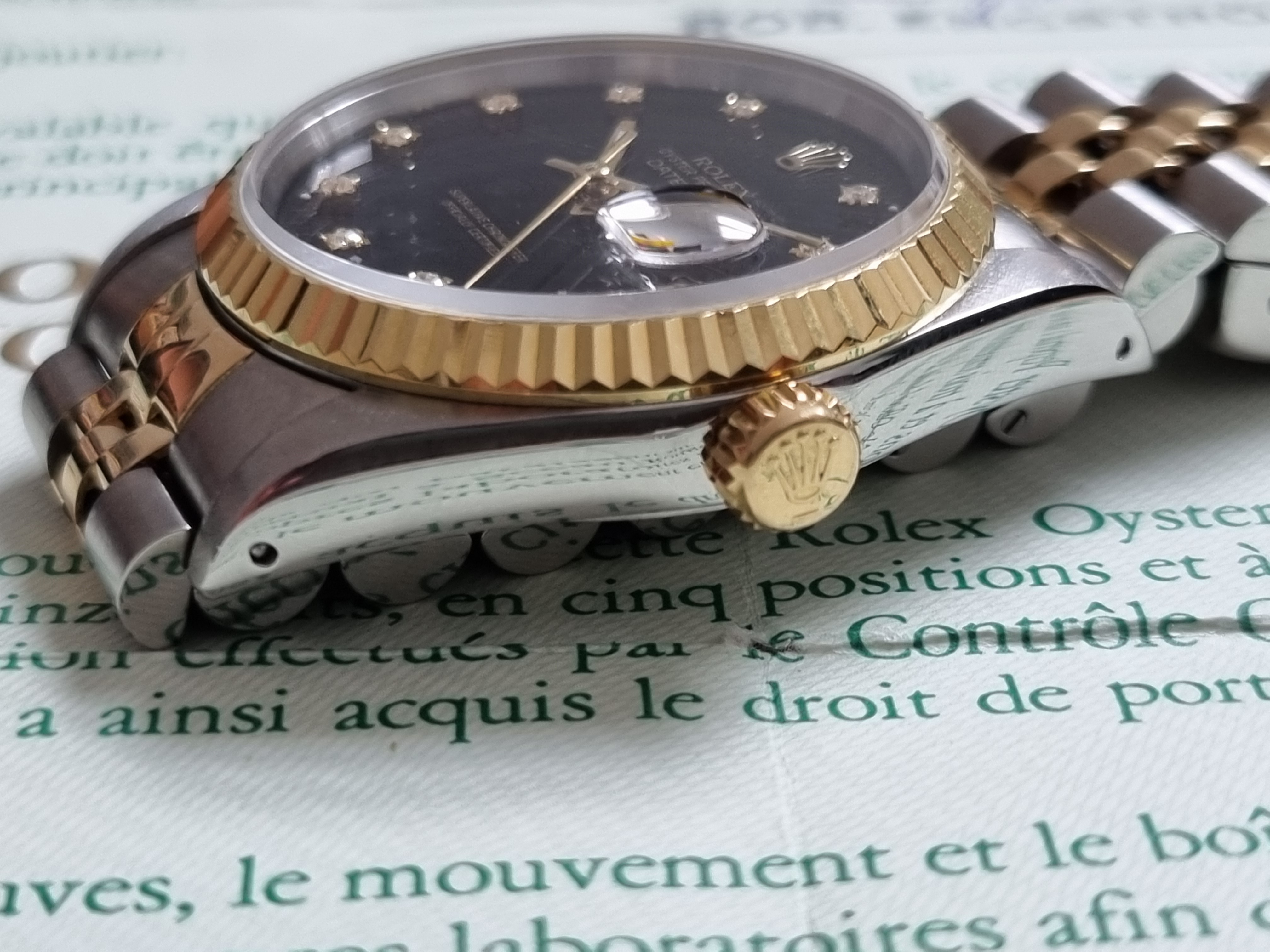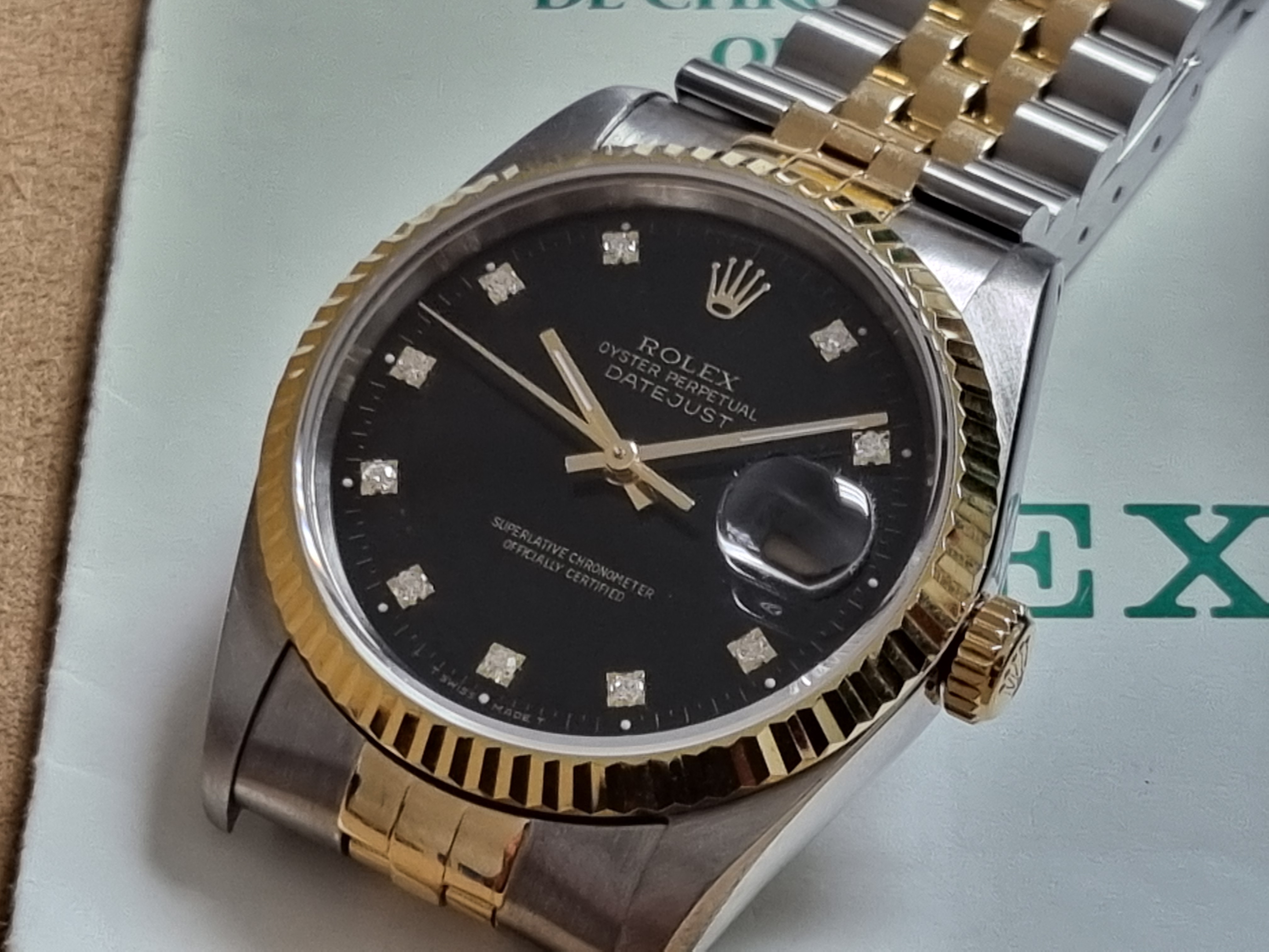 Rolex Datejust Datejust 36 16233 Factory Black Diamond Dial Steel And 18Kt Jubilee Paper 1988