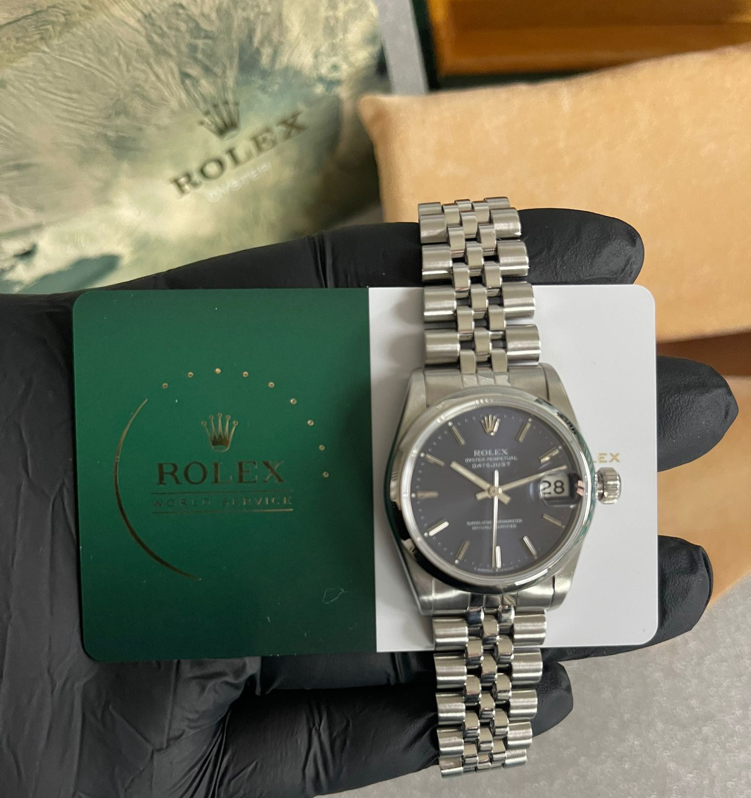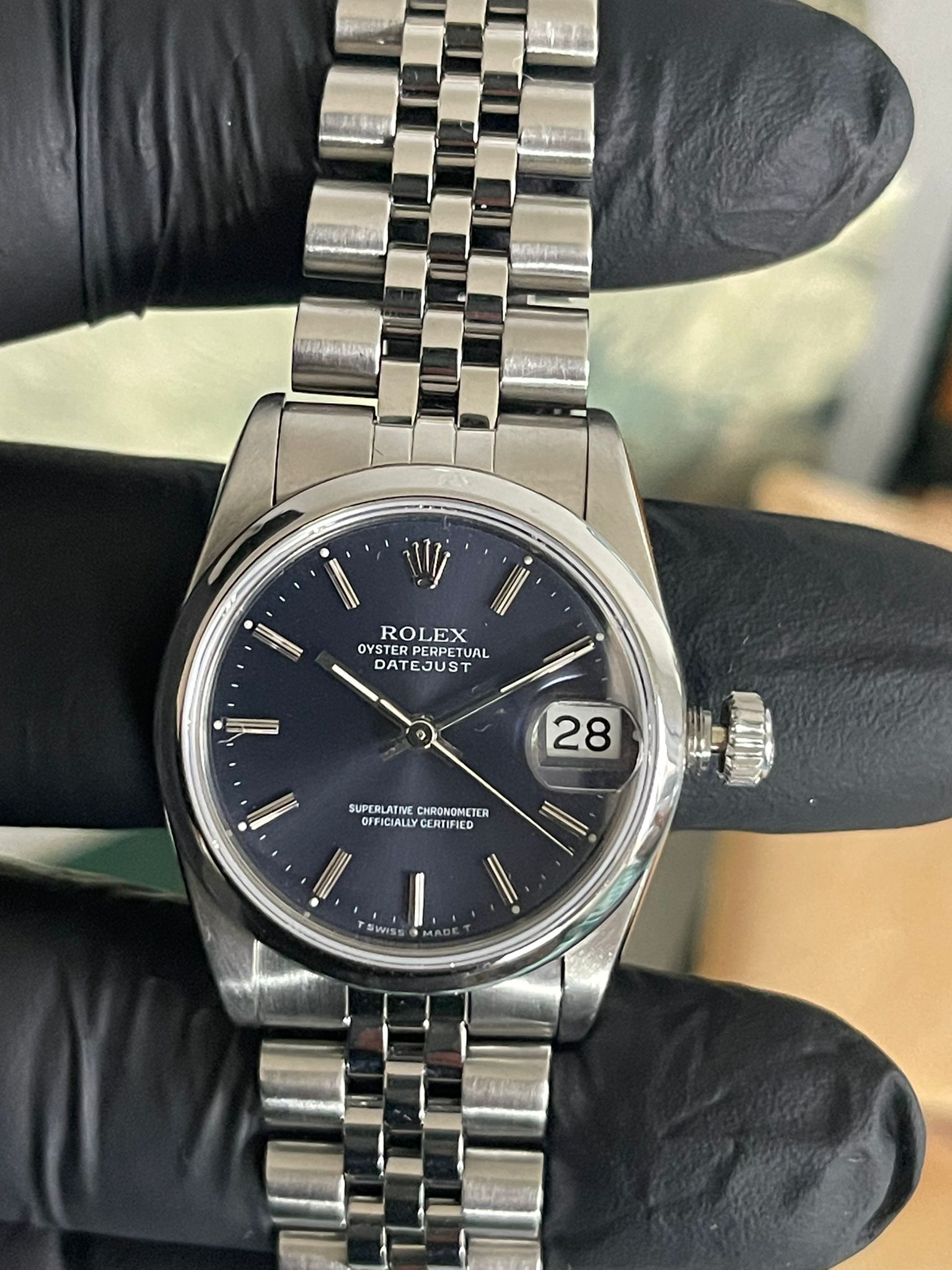 Rolex 68240 Datejust 31 Blu Dial Jubilee Bracelet Just Been Complete Serviced in 12-2025. Brand: ROLEX Model: Datejust 31 Blue Dial Ref.: 68240 Year of Manufacture: 1983 Functions: Hours, minutes, seconds, date Condition: Excellent Diameter: 31 mm Original Box: No Original Papers: No Movement: Automatic Case: Steel Bracelet: Rolex Jubilee steel with 21 links Gender: Women N. B. : Complete Serviced from Rolex in 12-2025 with Rolex card as pics.