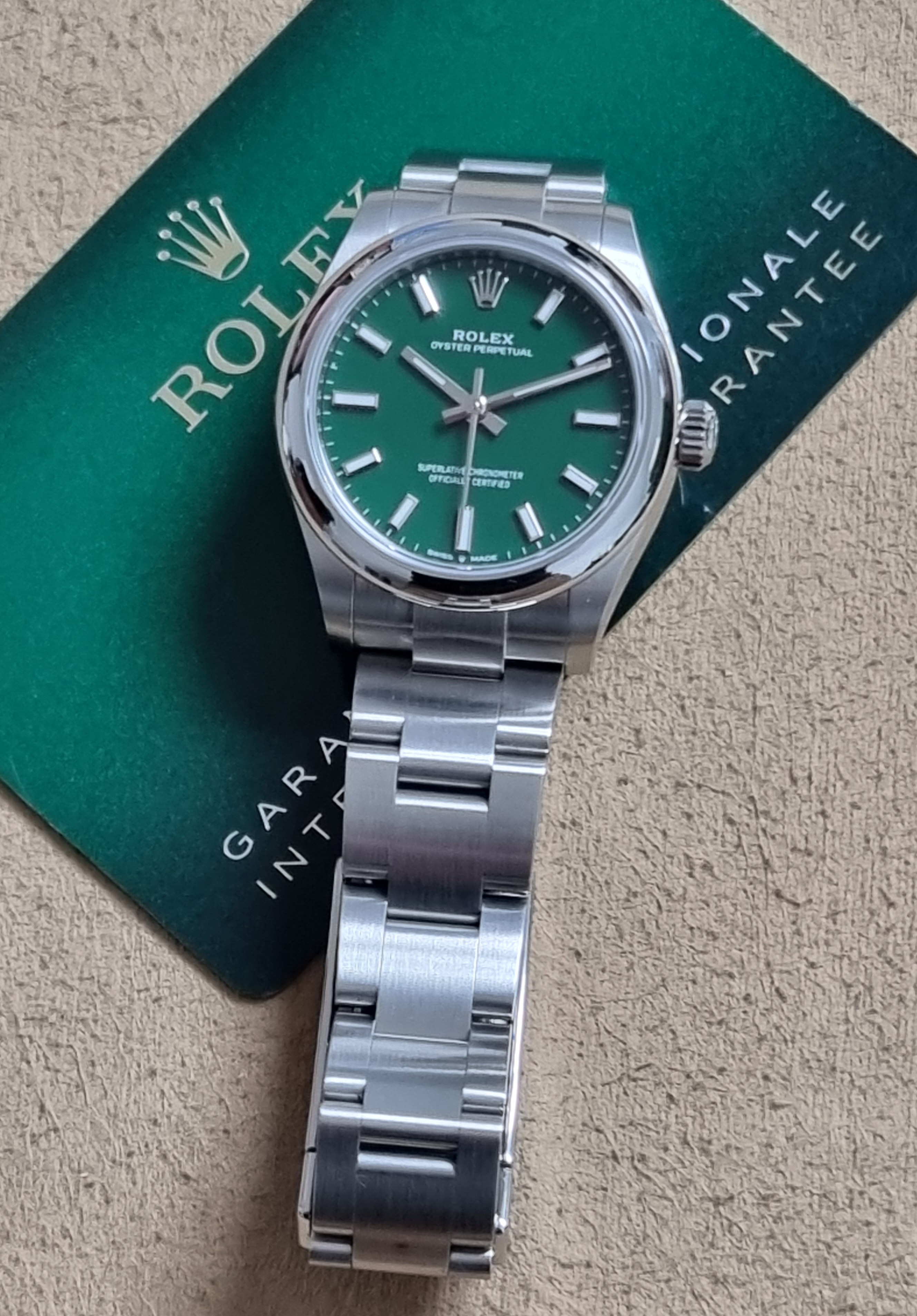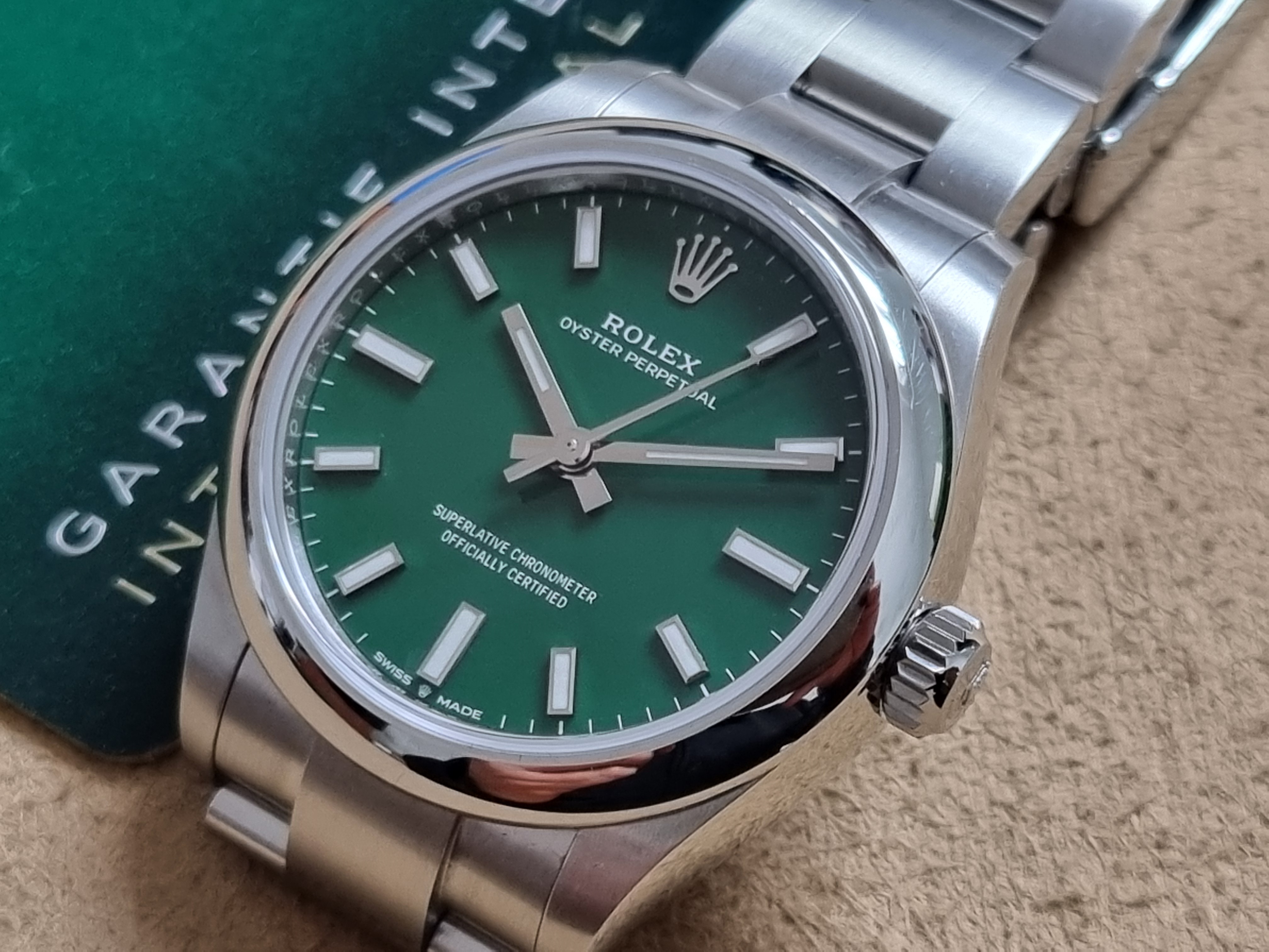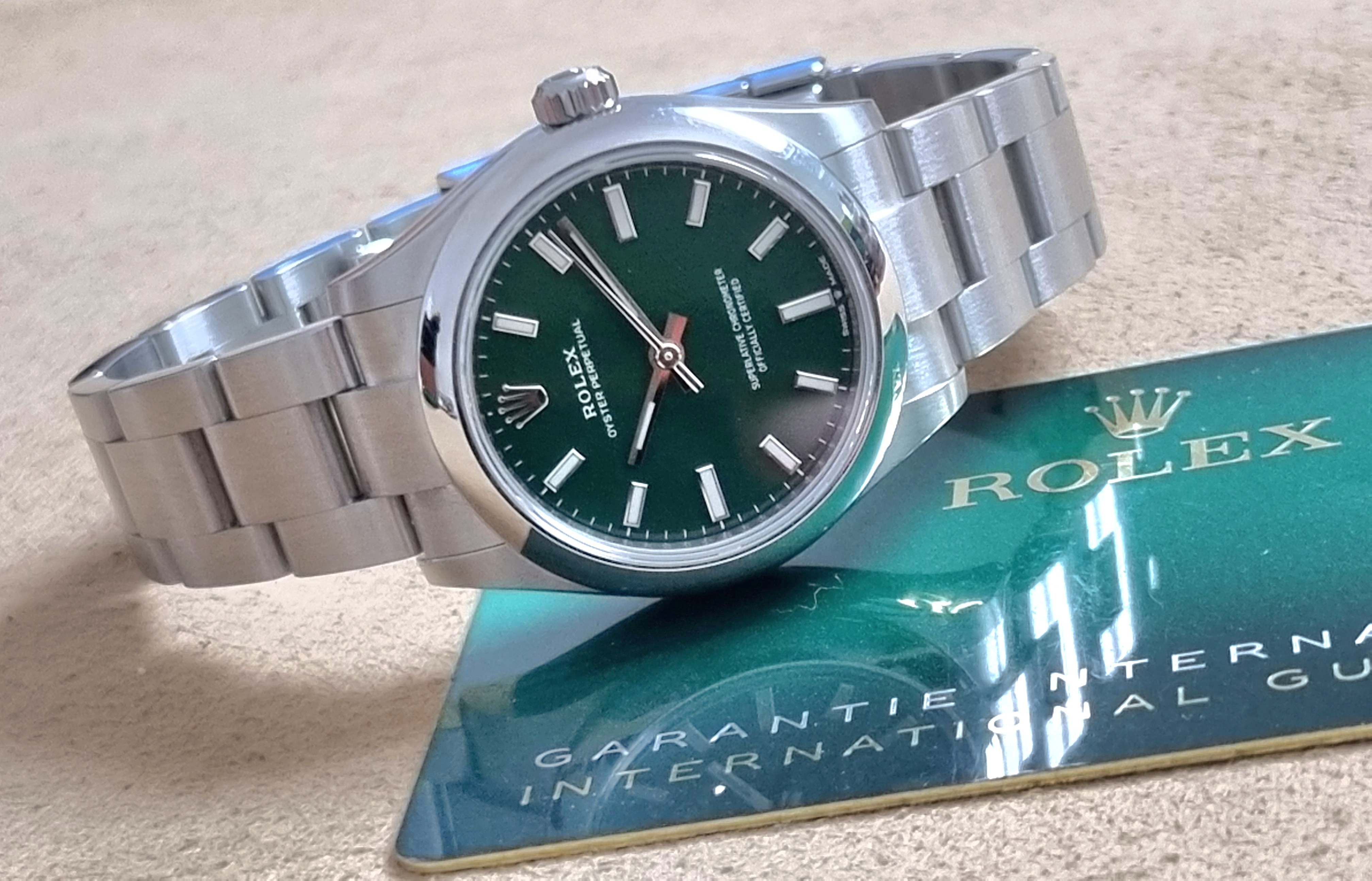Rolex Oyster Perpetual Oyster Perpetual 31 277200 Oyster Perpetual 31 Steel Green Dial Oyster Warranty Card Very Good Condition