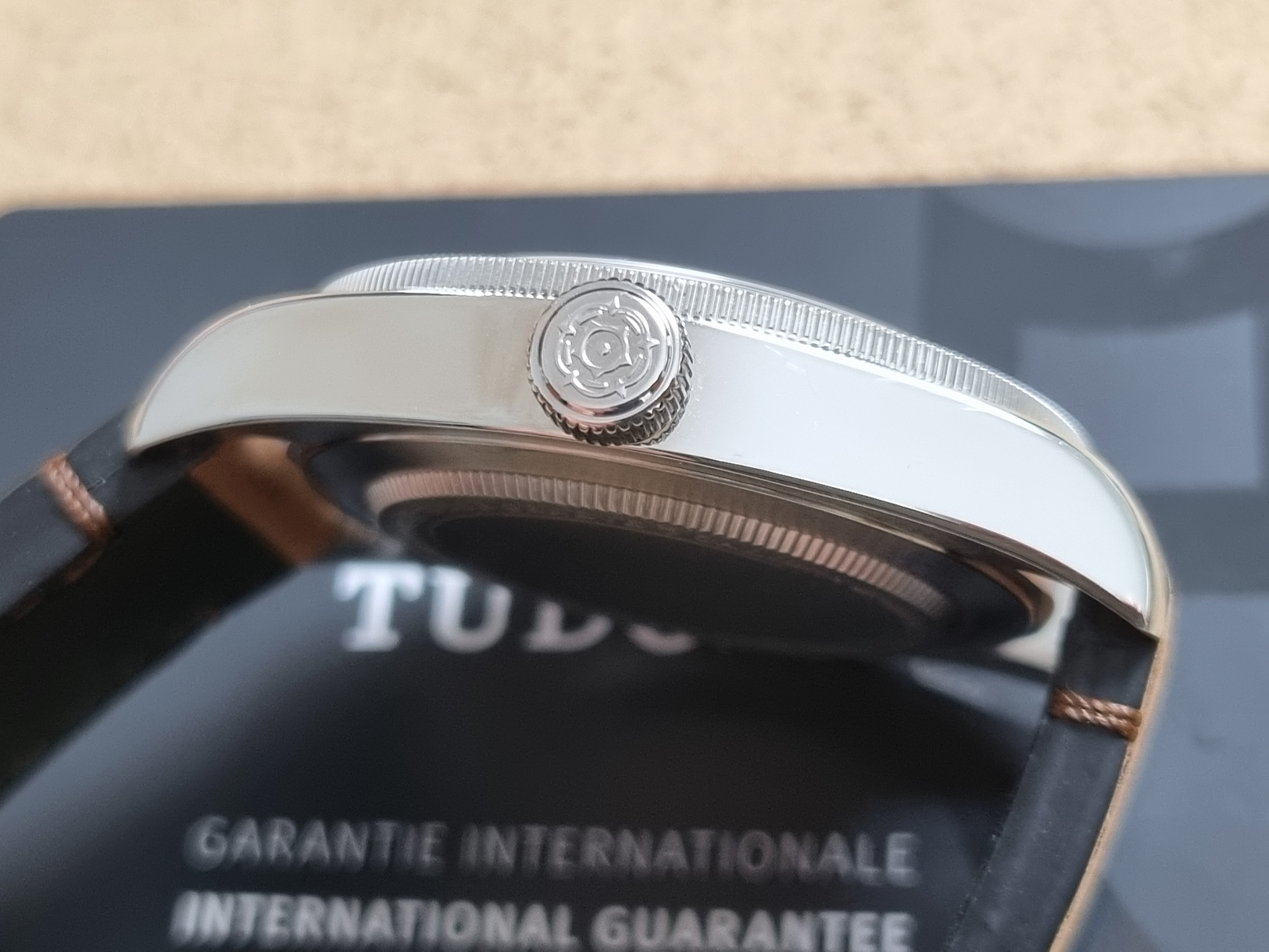 Tudor Black Bay Fifty-Eight 79030N Black On Leather And Deplo New Box And Warranty Card 07-2024. M79030N-0002 - Black Bay 58 Manufacturer Caliber MT5402 (COSC) - Stainless steel case, 39 mm Brown leather strap. Watch Specifications Reference: M79030N-0002 Five-Year Warranty Five-year, transferable warranty, no registration or mandatory service required Case Steel case, 39 mm, polished and satin-finished Lugs: 20 mm wide Case thickness: 11.9 mm Movement Manufacturer Caliber MT5402 (COSC) Self-winding mechanical movement with bidirectional rotor Power Reserve Approximately 70 hours of power reserve Wind Crown Screw-lock steel winding crown with embossed TUDOR rose and satin-finished steel crown tube with circular engraving Water Resistance Water resistant to 200 meters Bezel Unidirectional rotating steel bezel with 60-minute graduated disc in matte black anodized aluminum, gold-plated graduations and numerals Pink Dial Black, domed Crystal Domed sapphire crystal Bracelet Brown leather strap with folding clasp and safety catch