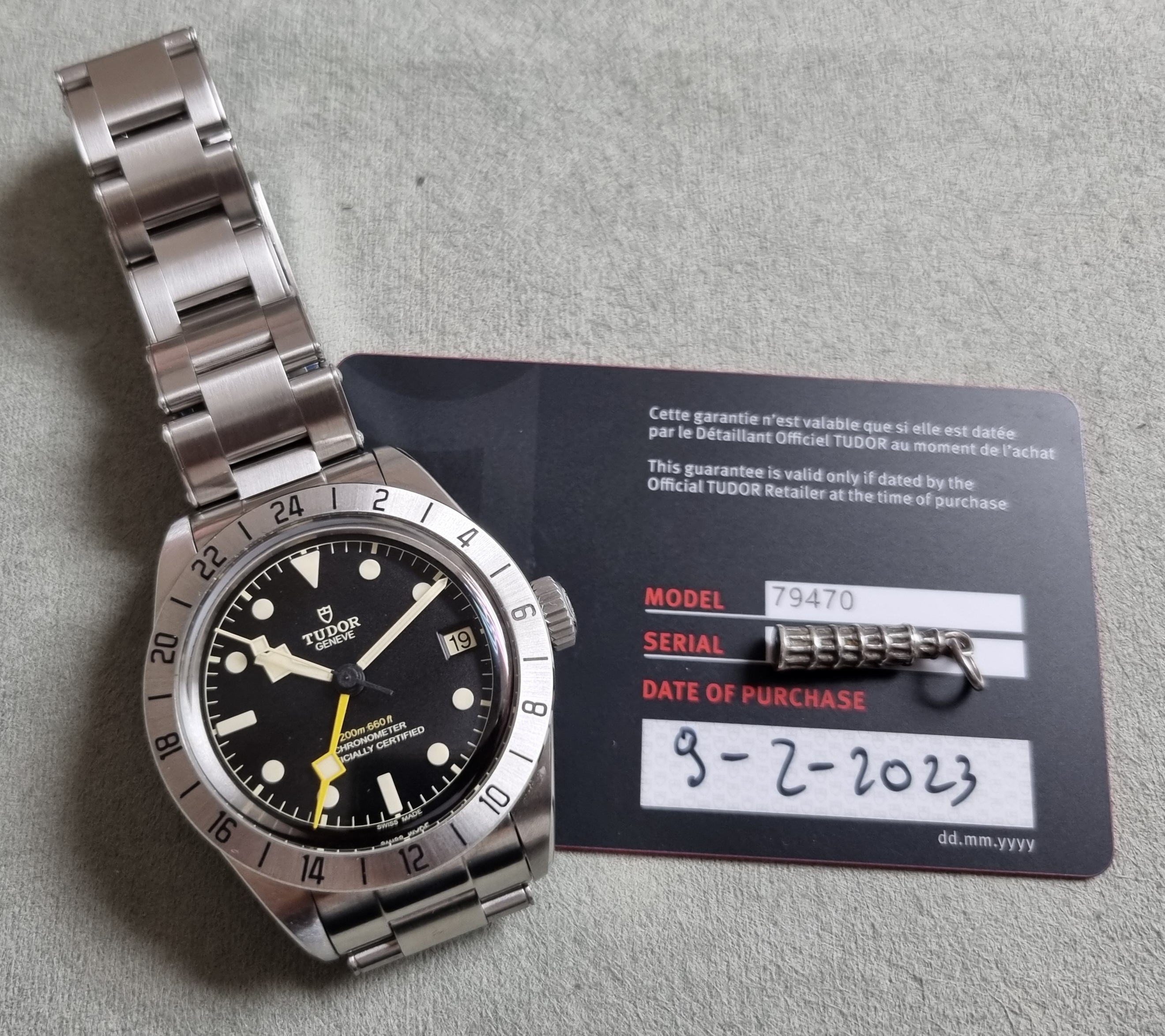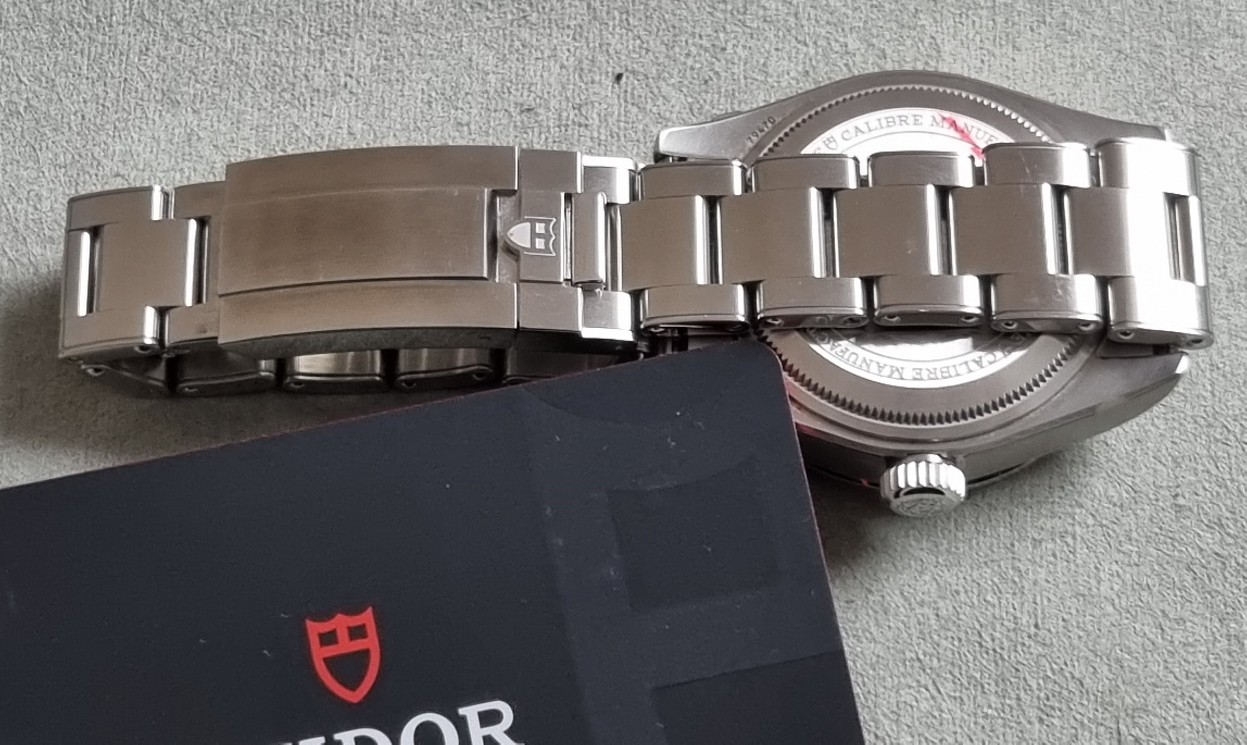 Tudor Heritage Black Bay Pro 79470 Automatic 39 Mm Steel Bracelet New Full Set 02 - 2023. Tudor M79470-0001 Black Bay Pro Manufacture Calibre MT5652 (COSC) Steel case, 39 mm Riveted steel bracelet Five-year guarantee, transferable, without registration or mandatory servicing Steel case, 39 mm, polished and satin-finished Lugs: 20 mm wide Case thickness: 14.6 mm Movement Manufacture Calibre MT5652 (COSC) Automatic mechanical movement with bidirectional rotor Integrated architecture Autonomy of approximately 70 hours Screw-locked steel winding crown with TUDOR rose in relief Water-resistant to 200 m Fixed 24-hour graduated bezel in satin-finished steel Dial Black, domed Domed sapphire crystal Riveted steel bracelet, polished and satin-finished, TUDOR clasp “T-fit” with quick adjustment system