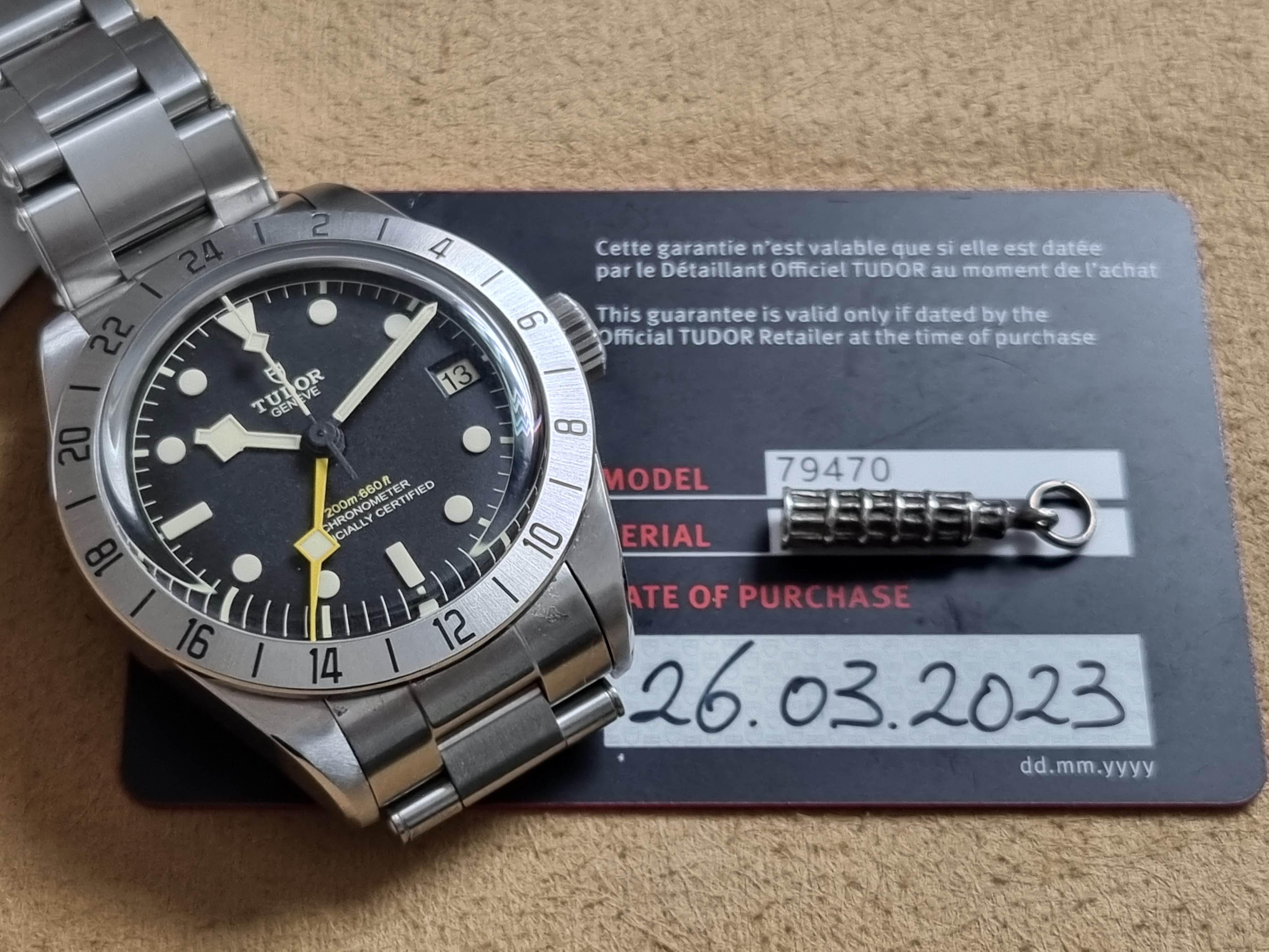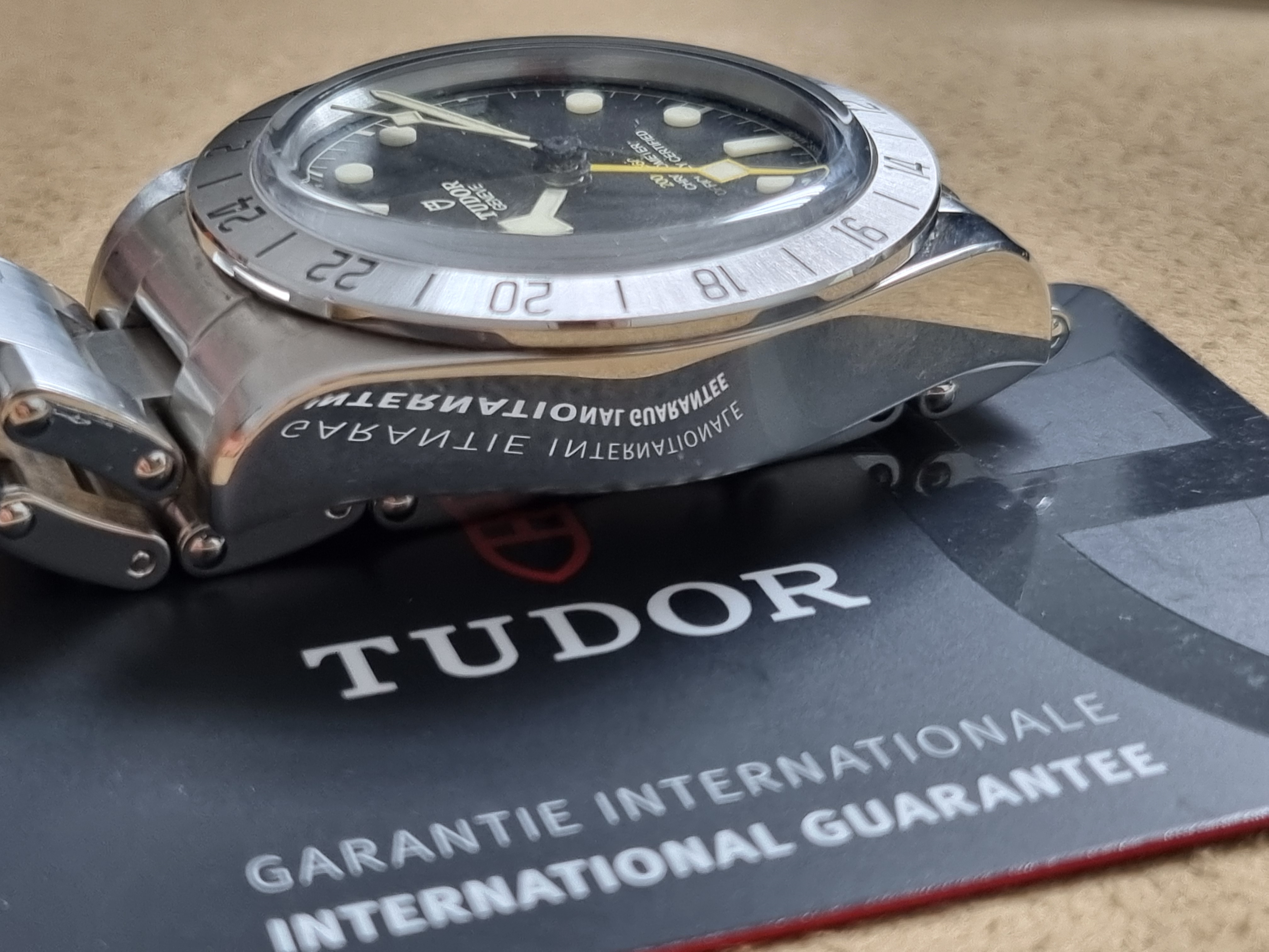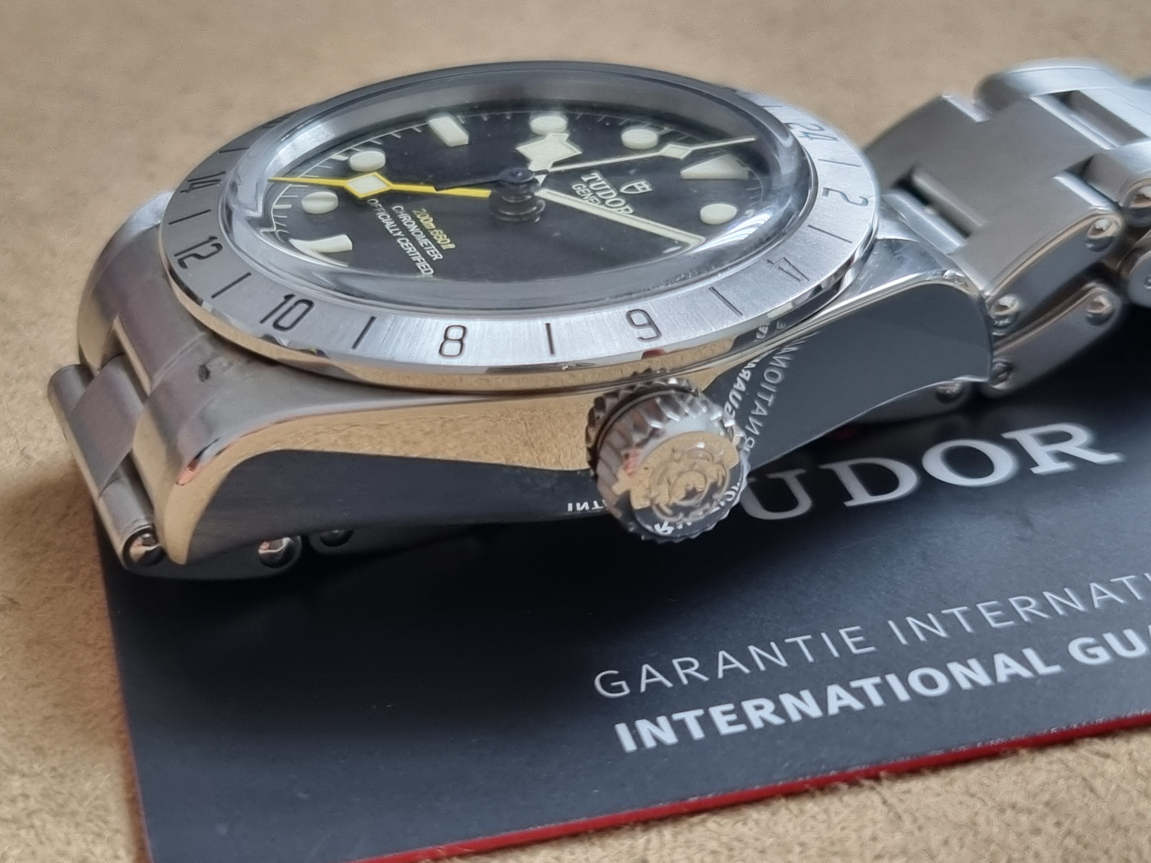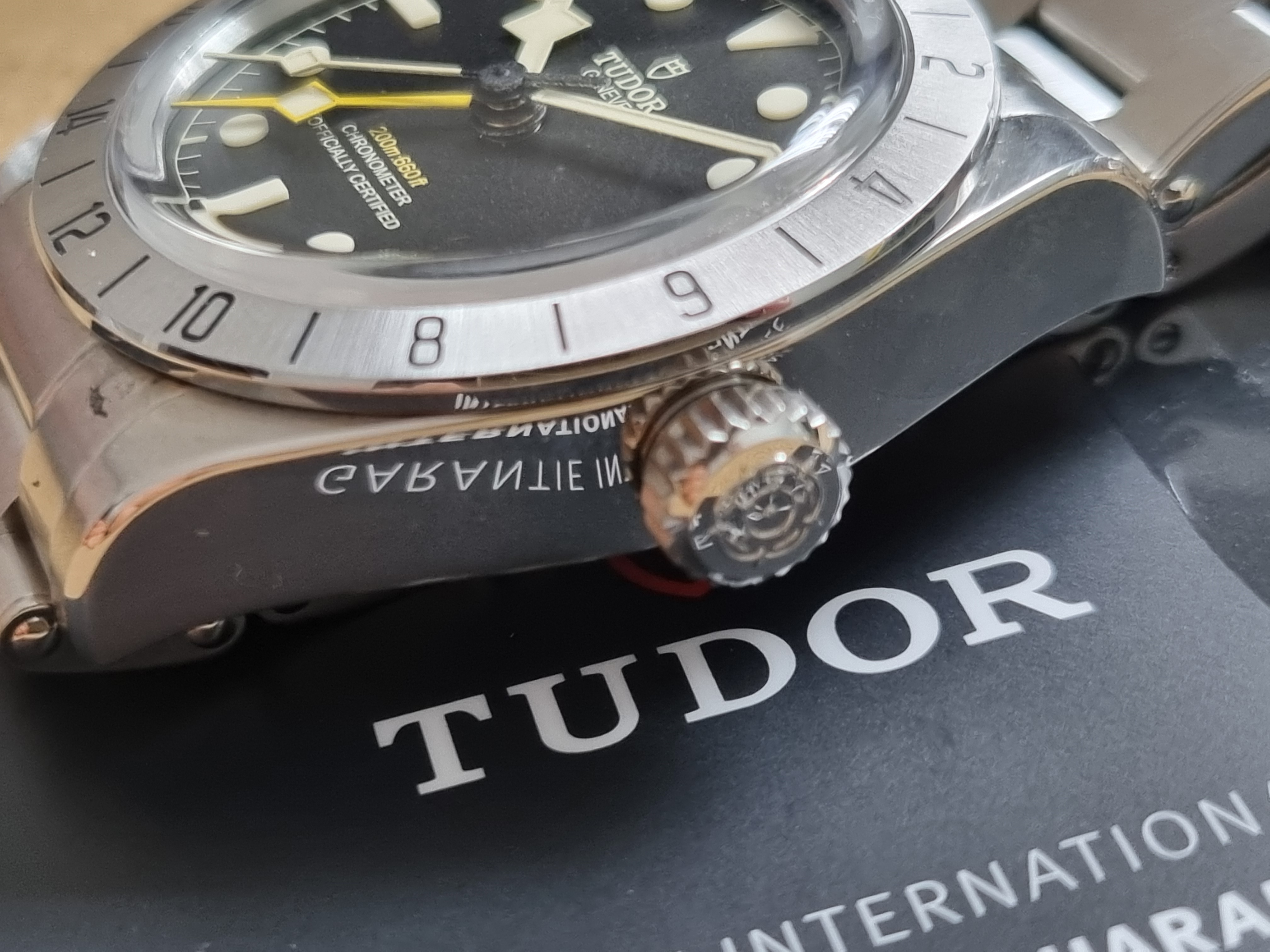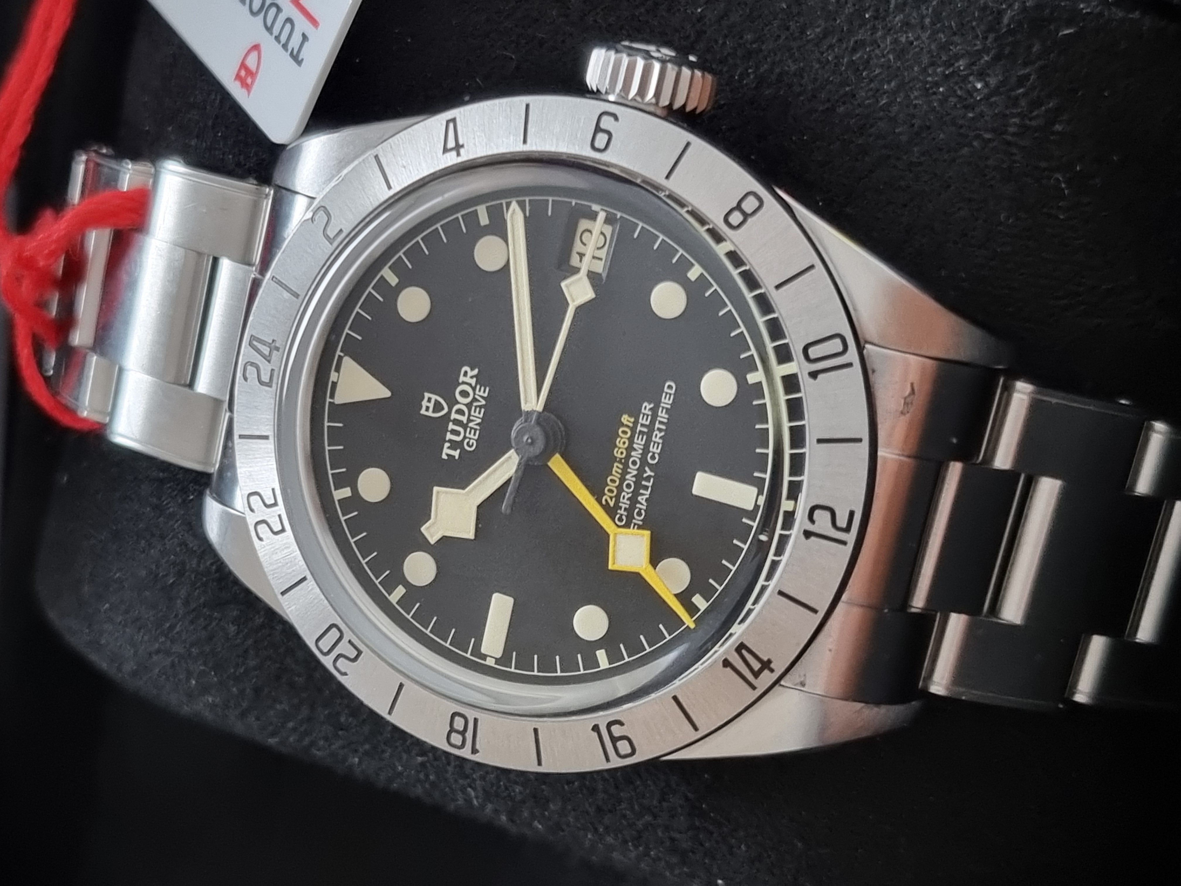 Tudor Heritage Black Bay Pro 79470 Automatic 39 Mm Steel Bracelet New Full Set 03 - 2023. Tudor M79470-0001 Black Bay Pro Manufacture Calibre MT5652 (COSC) Steel case, 39 mm Riveted steel bracelet Five-year guarantee, transferable, without registration or mandatory servicing Steel case, 39 mm, polished and satin-finished Lugs: 20 mm wide Case thickness: 14.6 mm Movement Manufacture Calibre MT5652 (COSC) Automatic mechanical movement with bidirectional rotor Integrated architecture Autonomy of approximately 70 hours Screw-locked steel winding crown with TUDOR rose in relief Water-resistant to 200 m Fixed 24-hour graduated bezel in satin-finished steel Dial Black, domed Domed sapphire crystal Riveted steel bracelet, polished and satin-finished, TUDOR clasp “T-fit” with quick adjustment system