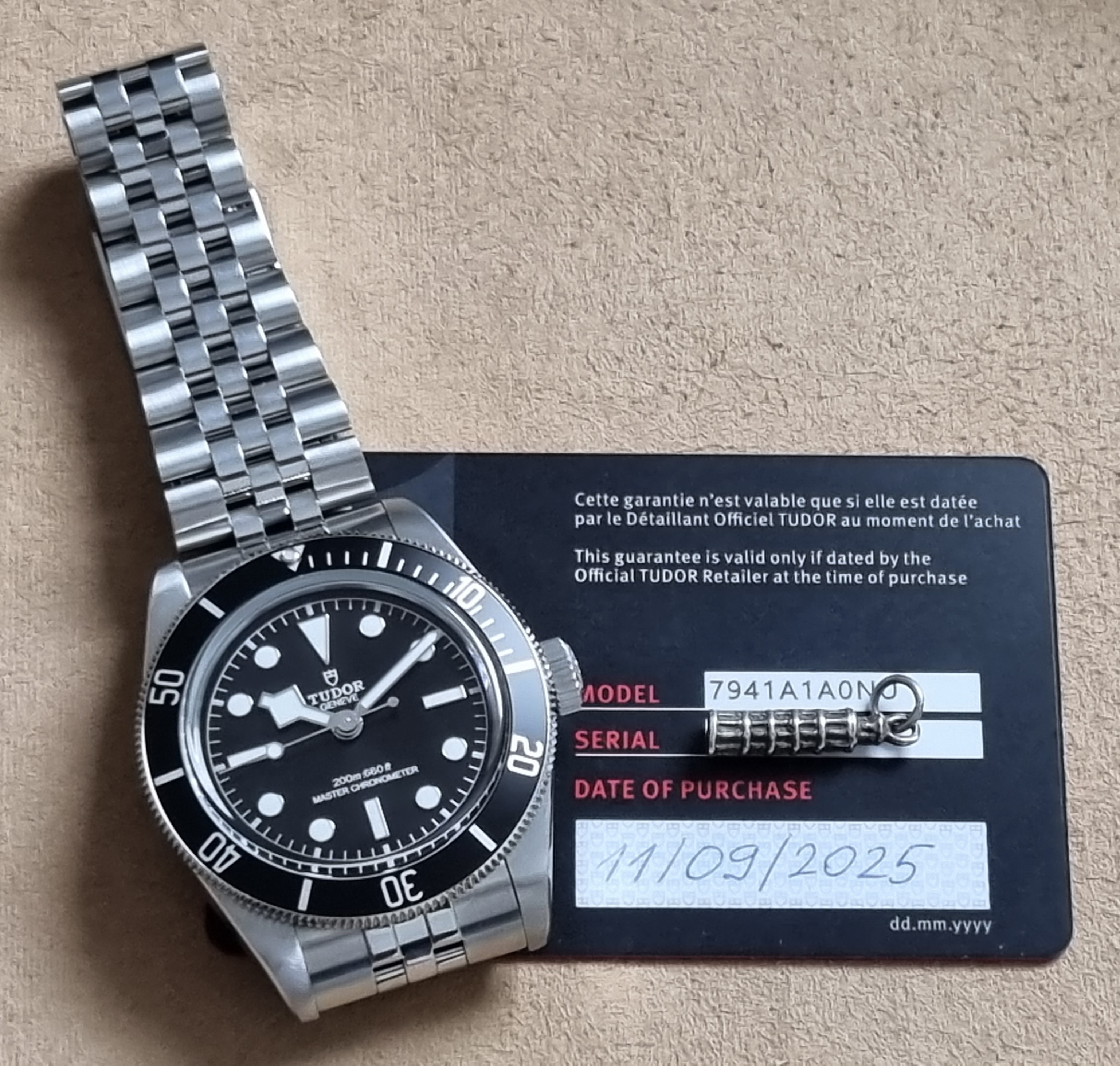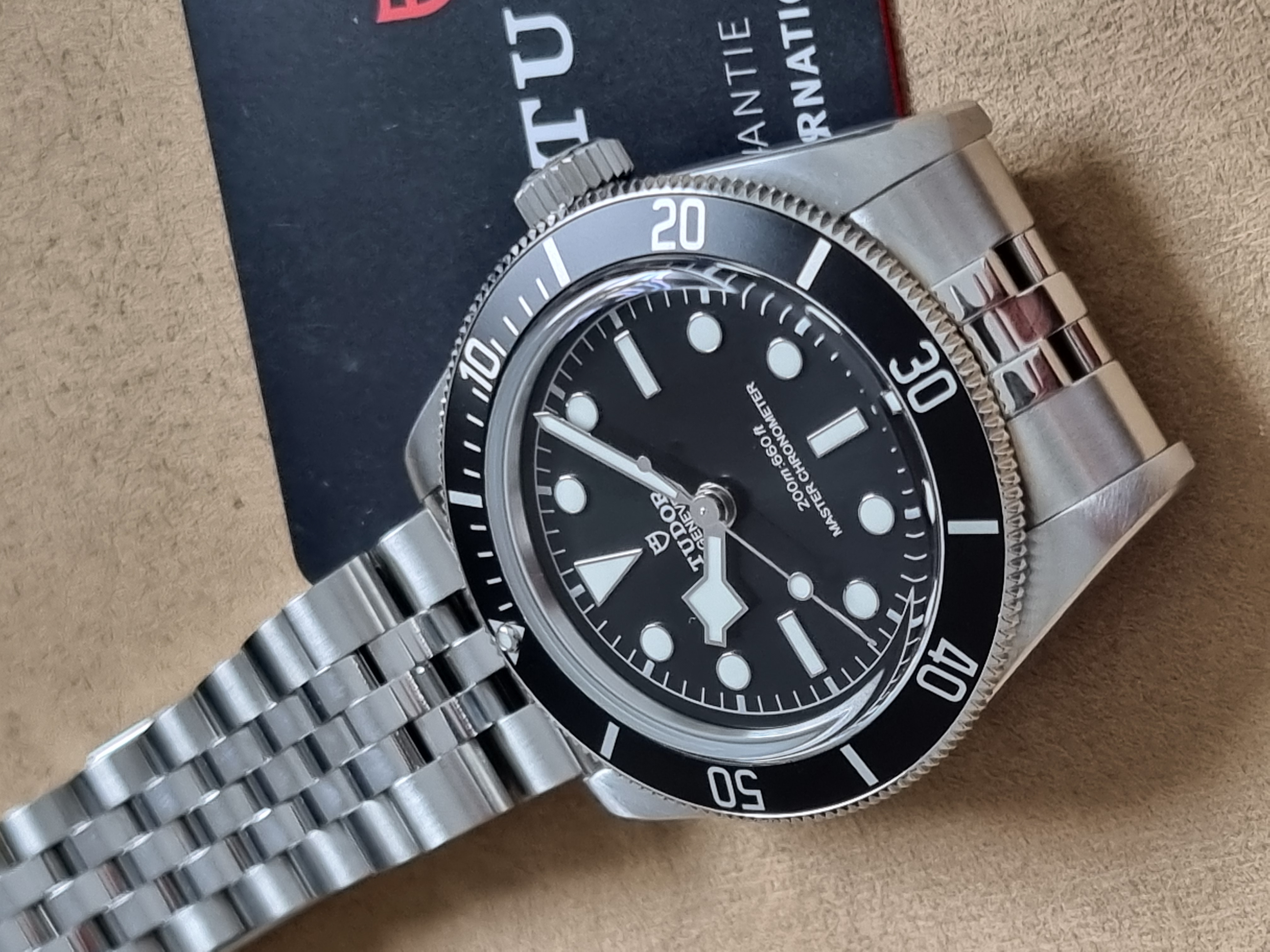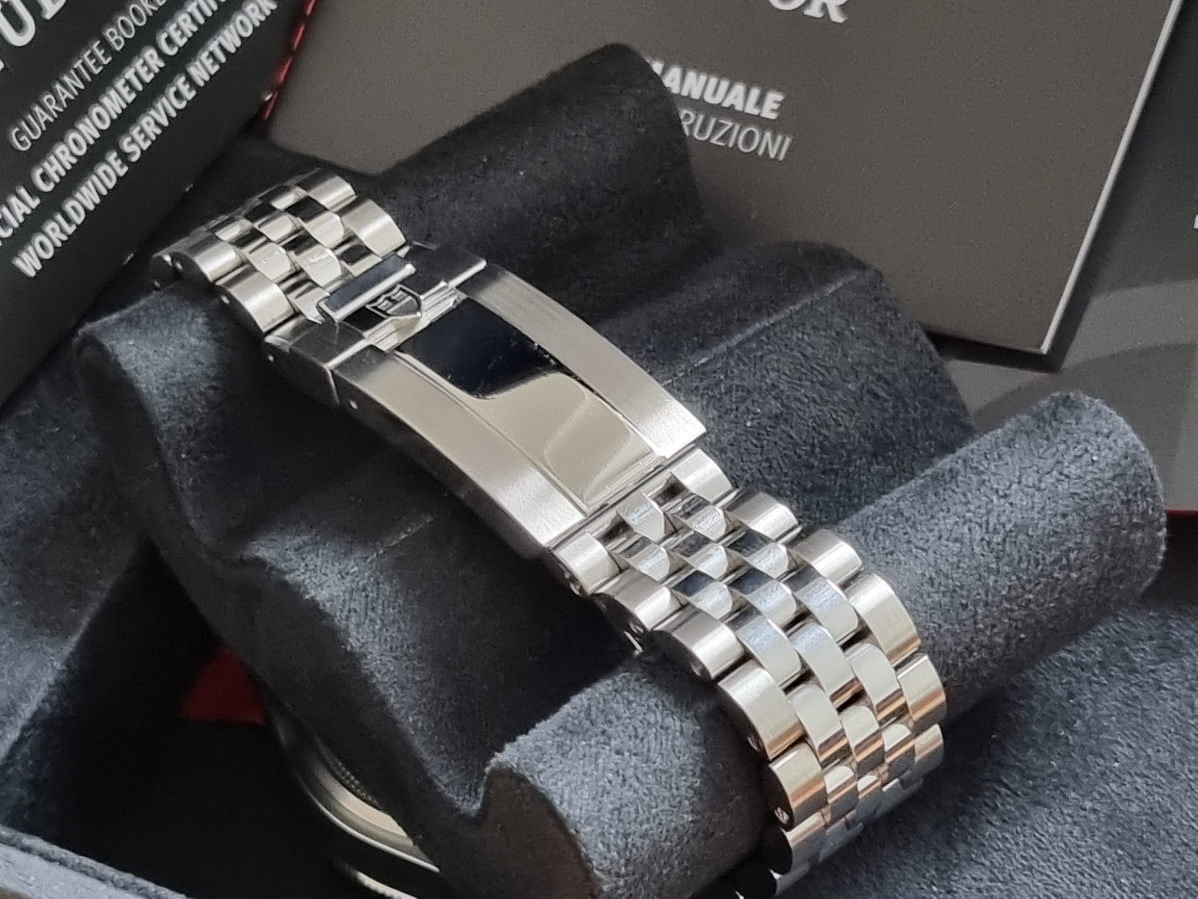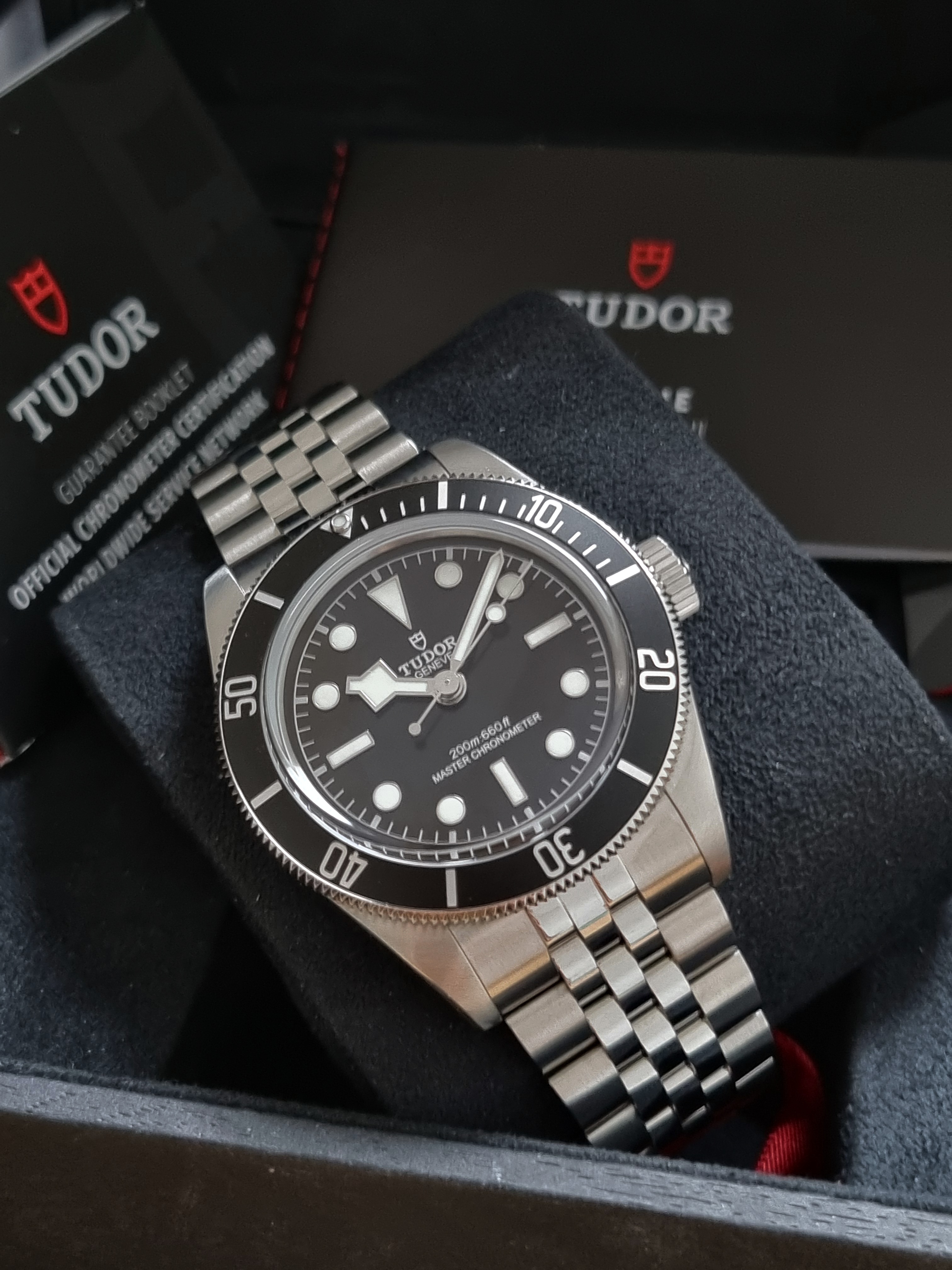 Tudor Black Bay 41 Heritage 41 Black Dial Jubilee Bracelet Like New Full Set 11-09-2025. Like new condition as pics. M7941A1A0NU-0003 - Black Bay Manufacture Caliber MT5602-U Steel Case, 41 mm - Steel Bracelet Watch Specifications Reference: M7941A1A0NU-0003 Five-Year Warranty Five-year transferable warranty, no registration or mandatory service required Case Steel case, 41 mm, polished and satin-brushed finish Lugs: 21 mm wide Case Thickness: 13.6 mm Movement Manufacture Caliber MT5602-U, certified by COSC and METAS Self-winding mechanical movement with bidirectional rotor Power Reserve 70-hour power reserve Wind Crown Screw-lock steel winding crown with embossed TUDOR rose Water Resistance Water resistant to 200 meters Bezel Unidirectional 60-minute graduated steel bezel with black aluminum insert Dial Black, domed, with applied silver-tone hour markers Crystal Domed sapphire crystal Bracelet Five-link steel bracelet, polished and satin-finished, with TUDOR "T-fit" clasp