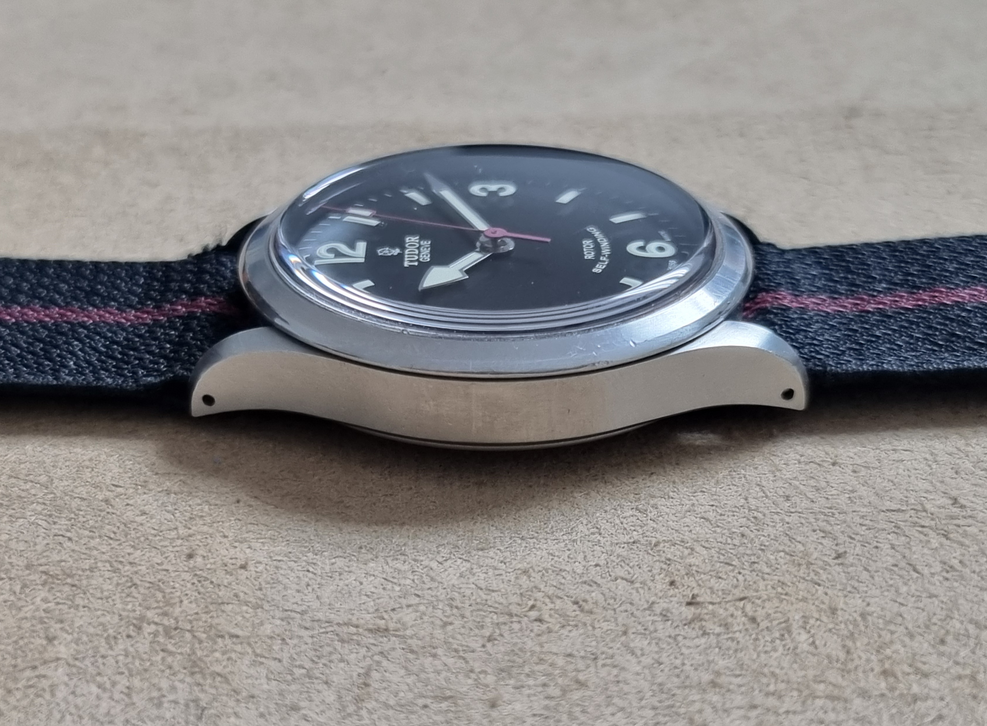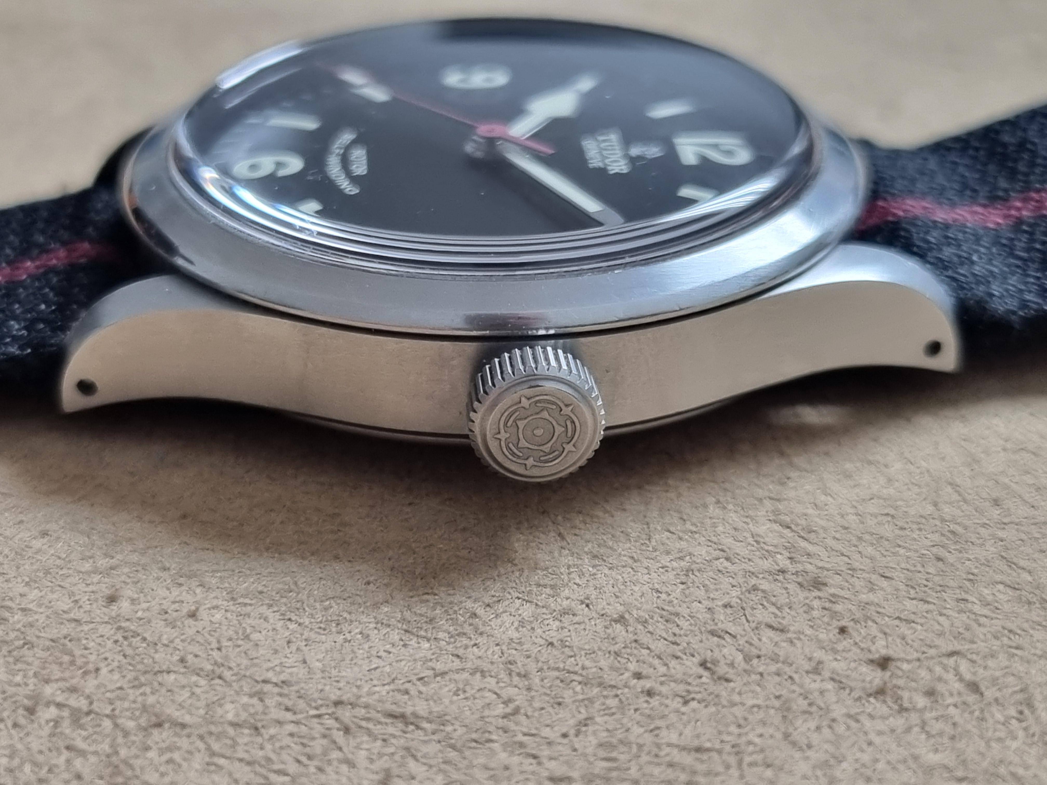 Tudor Heritage Ranger Ref. 79910 Steel 41Mm Black Dial Nato Strap Good Condition No Box No Paper. Brand: Tudor Model: Heritage Ranger Year of production: 2015 Reference: 79910 Diameter: 41mm Case material: Steel Automatic movement Tudor red and black fabric strap No box or paper