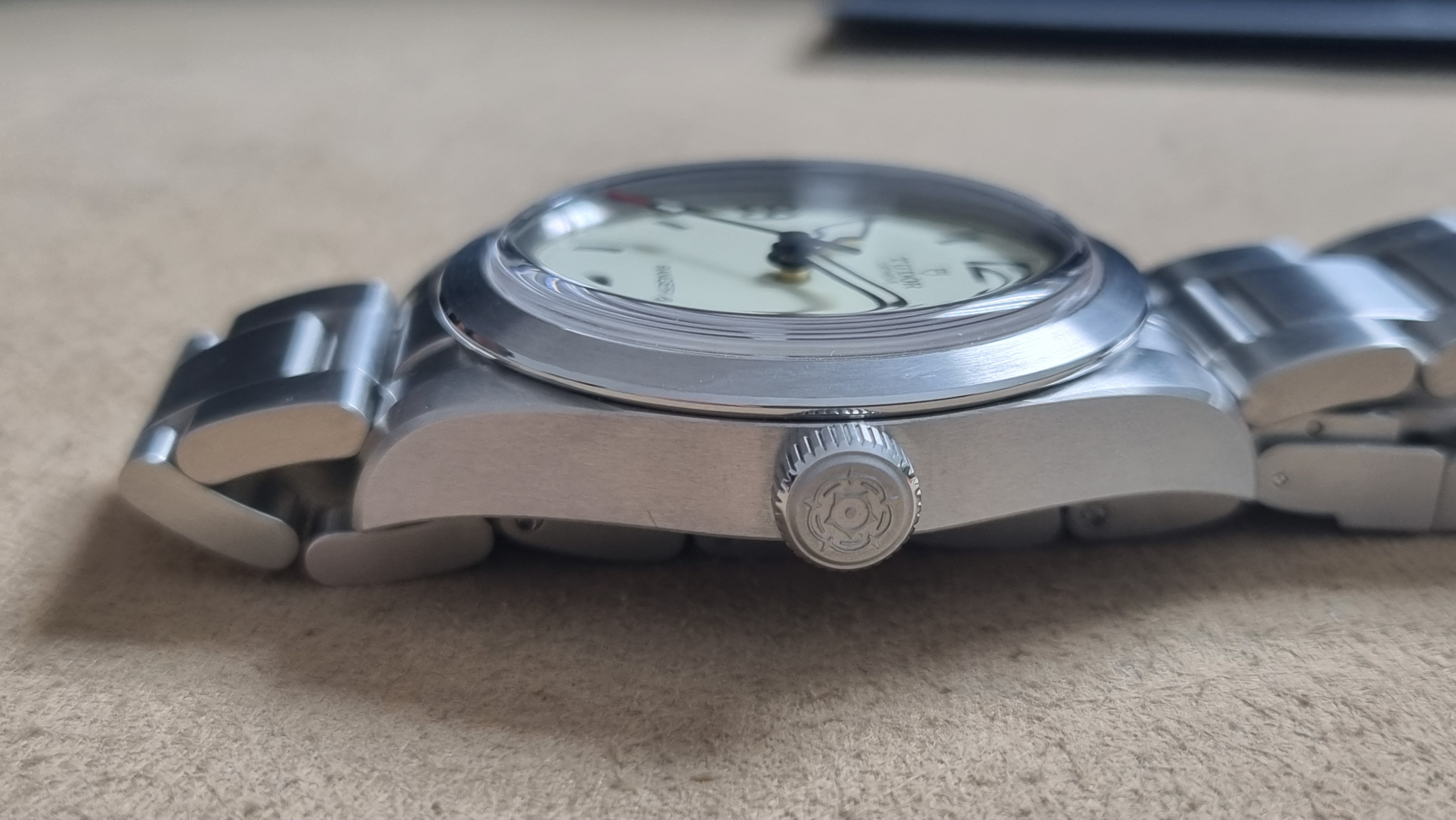 Tudor Ranger 79950-0008 Mm 39 Beige Domed Dial Dune White Full Set New 11-2025. M79950-0008 - Ranger Steel case, 39 mm Domed beige dial Watch specifications Reference: M79950-0008 Five-year warranty Five-year transferable warranty, no registration or mandatory service required Case Steel case, 39 mm, satin-finished Lugs: 20 mm wide Case thickness: 12.0 mm Movement Manufacturer Caliber MT5402 (COSC) Self-winding mechanical movement with bidirectional rotor Power reserve Approximately 70 hours of power reserve Wind crown Screw-lock steel winding crown with embossed TUDOR rose Water resistance Water resistant to 100 meters Bezel Smooth satin-finished steel Dial Beige Domed Crystal Domed sapphire crystal Bracelet Three-row steel bracelet with folding clasp and TUDOR "T-fit" safety catch